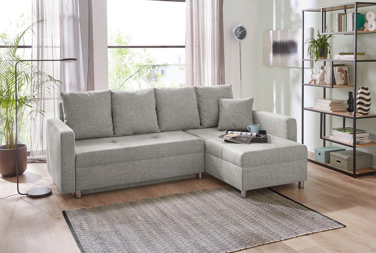 Um ein echtes Platzwunder handelt es sich bei diesem Ecksofa »Kappeln L-Form« von Jockenhöfer Gruppe, das mit einer ausziehbaren Liegefläche versehen und somit Schlaf- und Ruhezone in einem ist. Worüber du dich auch freuen kannst, ist das passende Zierkissen, das nicht nur ein schönes Deko-Element ist, sondern auch für noch mehr Komfort sorgt. Die Ottomane kann entweder auf der linken oder auf rechten Seite angebracht werden. Die Füße aus Metall benötigen nahezu keine Pflege, denn Rückstände, Schmutz oder Staub lassen sich ohne großen Aufwand mit einem feuchten Tuch abwischen.