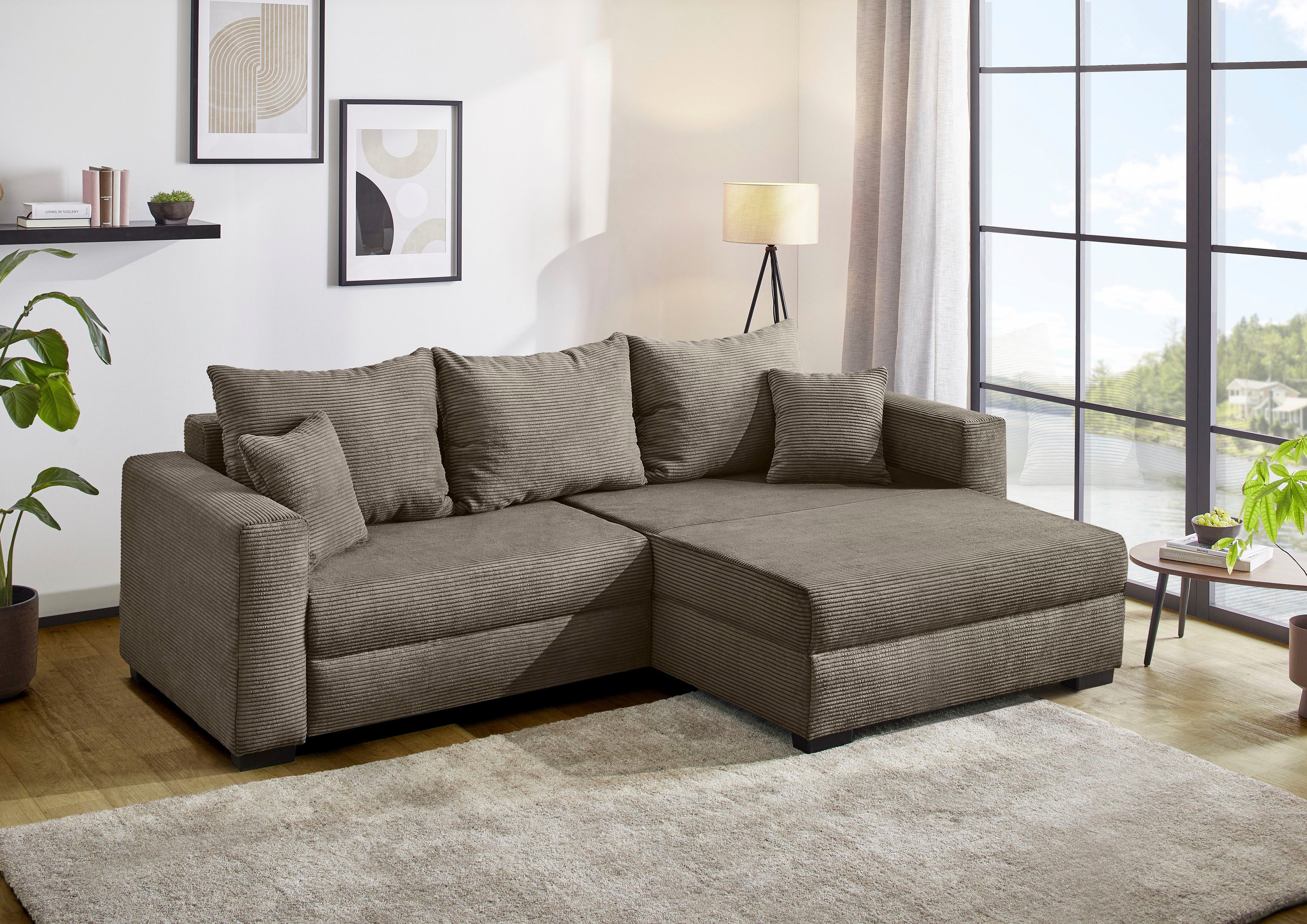 Versehen mit einem praktischen Bettkasten kann dieses Ecksofa »Saalbach XL L-Form, B: 261cm« von Jockenhöfer Gruppe ein separates Gästebett ersetzen und somit Platz einsparen. Wovon du auch profitierst, ist das passende Rückenkissen, die dekorativ und zugleich komfortabel sind. Die Ottomane kann entweder auf der linken oder auf rechten Seite angebracht werden. Die schwarzen Füße wurden aus Kunststoff gefertigt und sind daher temperatur- und formbeständig.