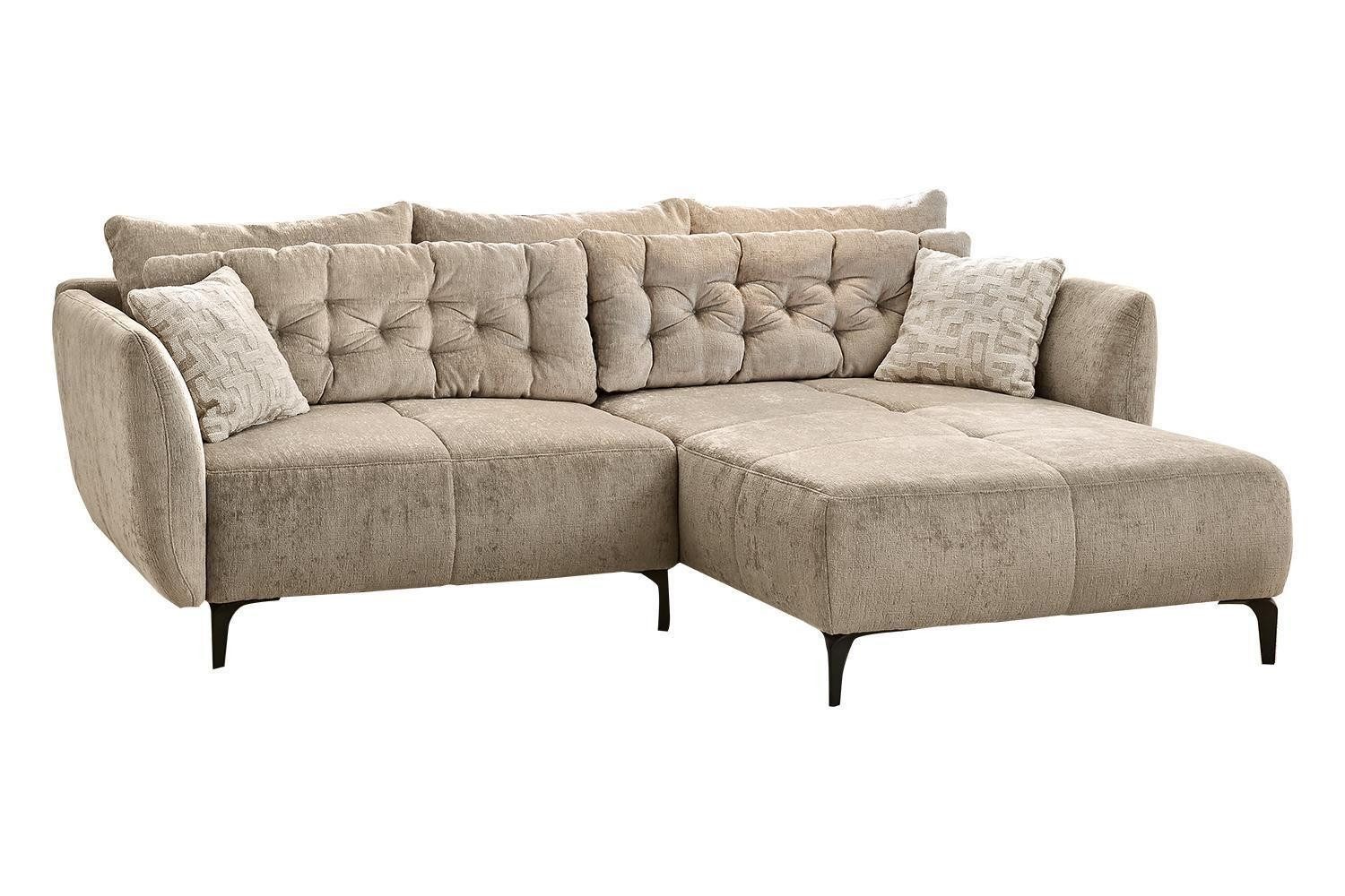 Lieferumfang | 1 Ecksofa mit beidseitig montierbarer Ottomane, 2 Rückenkissen, 3 Steppkissen und 2 Wendekissen |