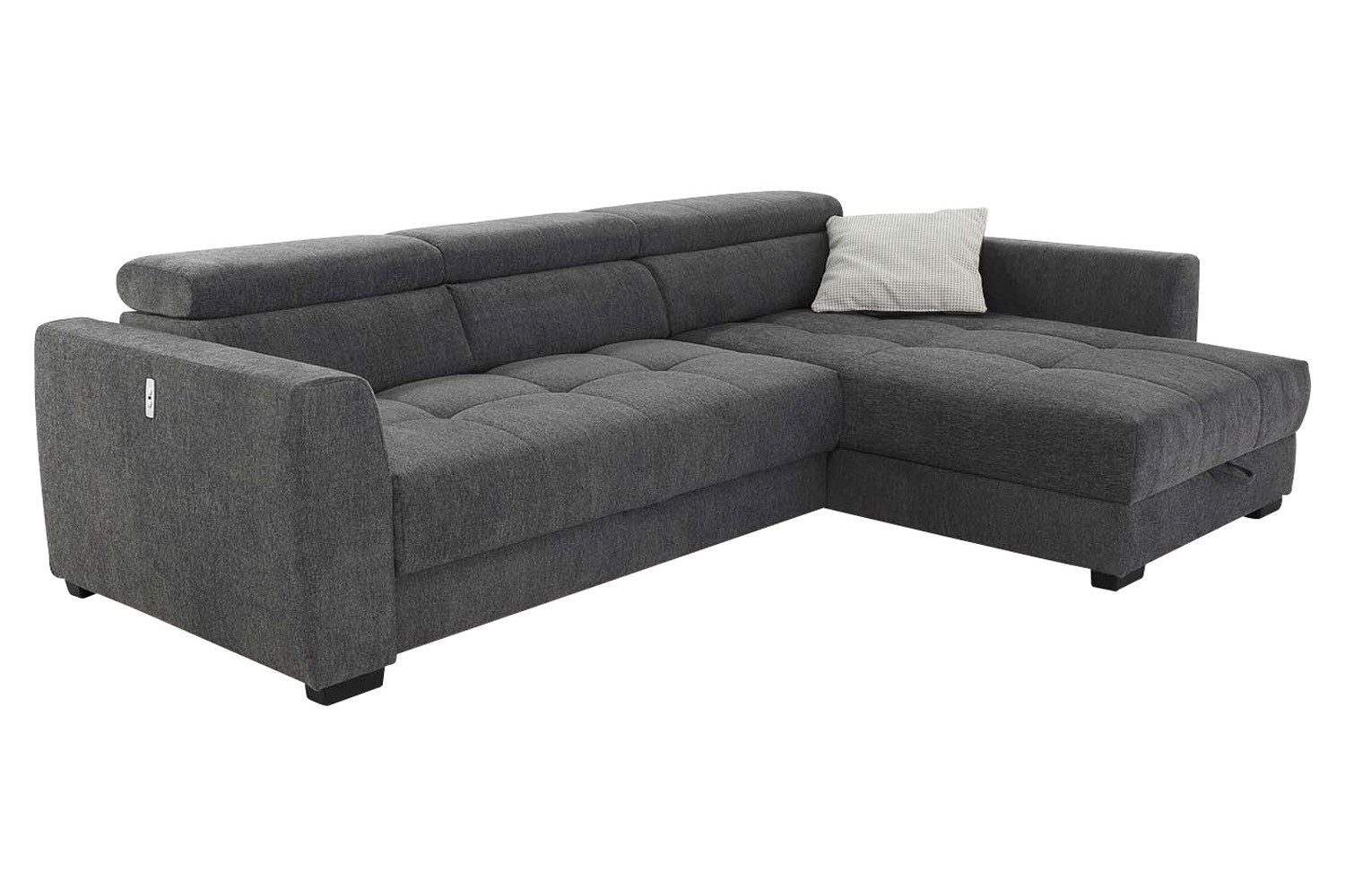 Lieferumfang | 1 Ecksofa mit rechts- oder linksseitig montierbarer Ottomane, Bettkasten, elektrischer Sitztiefenverstellung, 3 Kopfteilverstellungen und 1 Zierkissen |