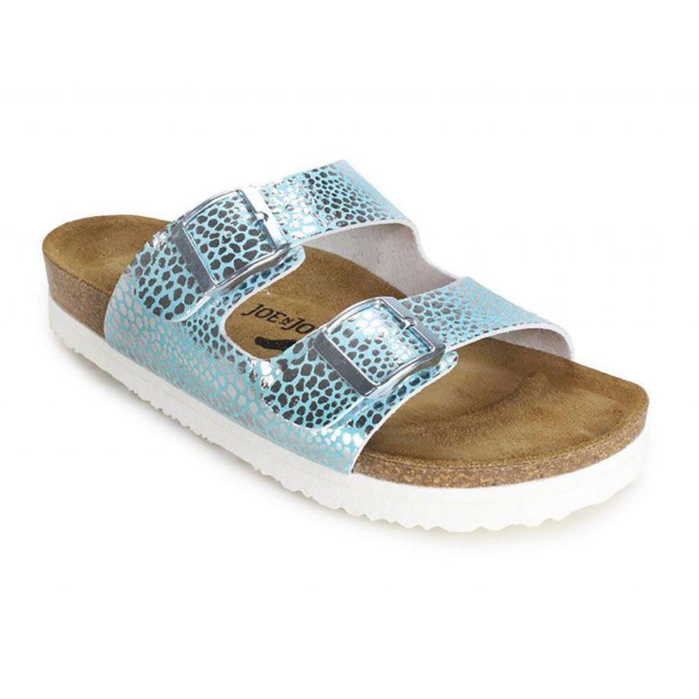 Die Damen Pantolette "London" von JOE N JOYCE ist ein absoluter Blickfang für den Sommer. In einer lebendigen türkisen Farbe mit trendigem Leopardenmuster verleiht sie Ihrem Outfit einen wilden und gleichzeitig stilvollen Touch. Die Pantolette ist in Размер 39 erhältlich und besteht aus strapazierfähigem Synthetik, das für Langlebigkeit und Tragekomfort sorgt. Die weiße Ethylen-Vinylacetat Laufsohle bietet eine gute Dämpfung und ermöglicht ein angenehmes Gehen. Der Verschluss erfolgt über eine praktische Schnalle, die eine individuelle Anpassung ermöglicht. Die Pantolette ist zudem mit einer Decksohle aus Leder ausgestattet, die zusätzlichen Komfort und Atmungsaktivität bietet. Mit der JOE N JOYCE Damen Pantolette "London" erhalten Sie einen auffälligen und modischen Begleiter, der Ihre Sommergarderobe aufregend ergänzt.