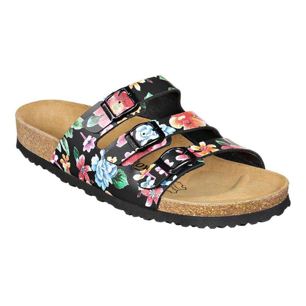 Die Pantolette "Paris" von JOE N JOYCE vereint Stil und Farbenfreude auf harmonische Weise. Das Obermaterial aus schwarzem Synthetik ist mit einem lebendigen Blumenmuster in verschiedenen bunten Farben versehen, was der Pantolette einen fröhlichen Touch verleiht. In der Размер 40 erhältlich, bietet sie eine bequeme Passform. Die Laufsohle aus Ethylen-Vinylacetat sorgt für angenehme Dämpfung und Flexibilität bei jedem Schritt. Mit dem Verschluss der drei Schnallen lässt sich die Pantolette individuell an den Fuß anpassen. Die Decksohle aus Leder gewährleistet zusätzlichen Komfort und ein angenehmes Tragegefühl. Mit dieser Pantolette kannst du den Sommer mit Stil und Leichtigkeit genießen und deine Outfits mit einem Hauch von Farbe aufwerten.