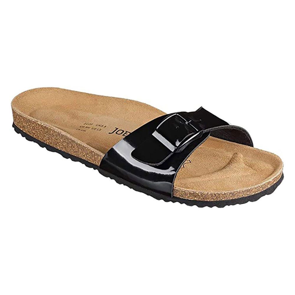 Die Pantolette "Porto" von JOE N JOYCE ist eine elegante und bequeme Wahl für den Sommer. In klassischem Schwarz gehalten, verleiht sie jedem Outfit einen zeitlosen und stilvollen Touch. Das Obermaterial aus hochwertigem Synthetik bietet nicht nur eine ansprechende Optik, sondern auch Strapazierfähigkeit. Mit einer Размер von 36 passt die Pantolette perfekt und bietet einen bequemen Sitz. Der Verschluss erfolgt durch eine praktische Schnalle, die eine individuelle Anpassung ermöglicht. Die Decksohle aus echtem Leder sorgt für zusätzlichen Komfort und ein angenehmes Tragegefühl. Die Pantolette "Porto" vereint Eleganz, Komfort und Qualität und ist ein vielseitiges und zeitloses Schuhwerk für den Sommer.