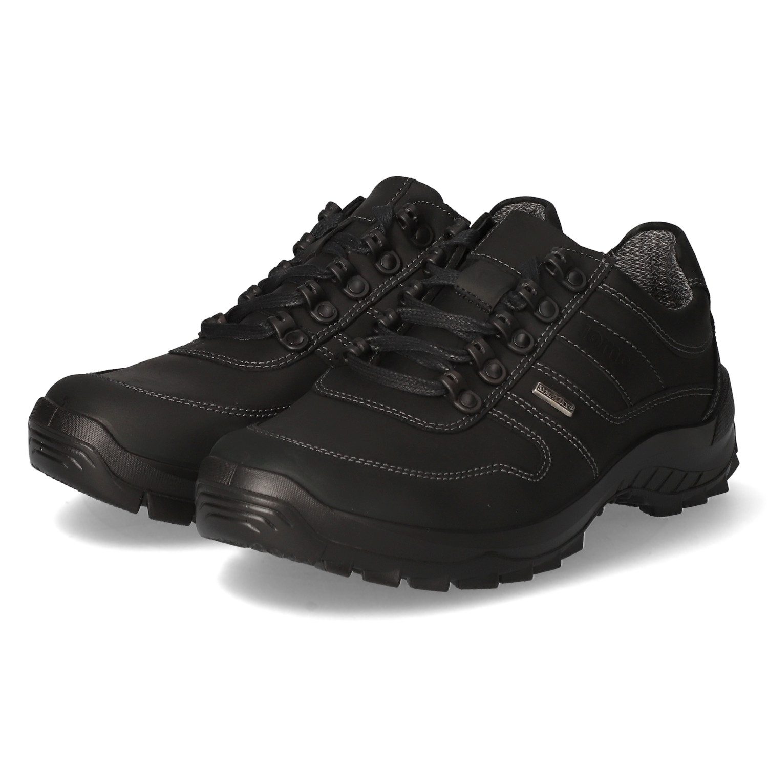 Jomos Herren Schnürschuhe/ Halbschuhe Schwarz Glattleder - wasserabweisend und atmungsaktiv (SympaTex) - sportliche Ziernähte und Zierstreifen - Schnürung - verstärkter Fußrahmen - gepolsterter Einstieg - leichtes Textilfutter - gepolsterte Wechseldecksohle - flexible, rutschhemmende Profilsohle
