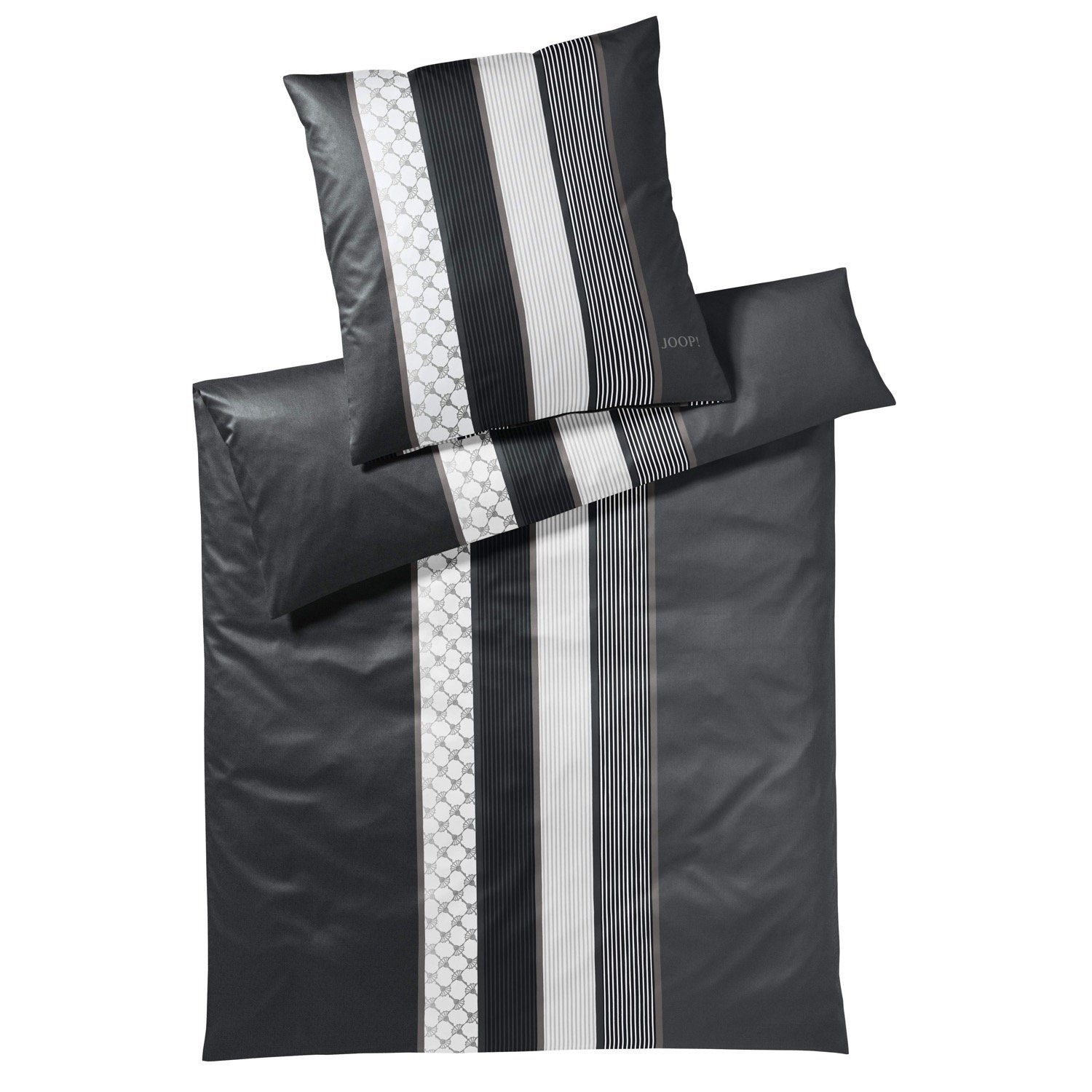 Diese hochwertige Bettwäsche der Edelmarke JOOP! aus 100 Prozent Baumwolle in Mako Satin Qualität besticht durch eine elegante Ausstrahlung. Die Garnitur mit angenehm glatter Oberfläche ist sehr hautsympathisch und bringt mit einem harmonischen Streifenlook ein besonders edles Design in Ihr Schlafzimmer. Die Streifen sind in Schwarz, Grau, Weiß und teilweise mit silber-grauen Kornblumen designed, wodurch ihr Schlafzimmer einen echten Blickfang erhält. Träumen Sie in diesem luxuriösen Schmuckstück und genießen Sie erholsame Nächte in höchster Qualität.