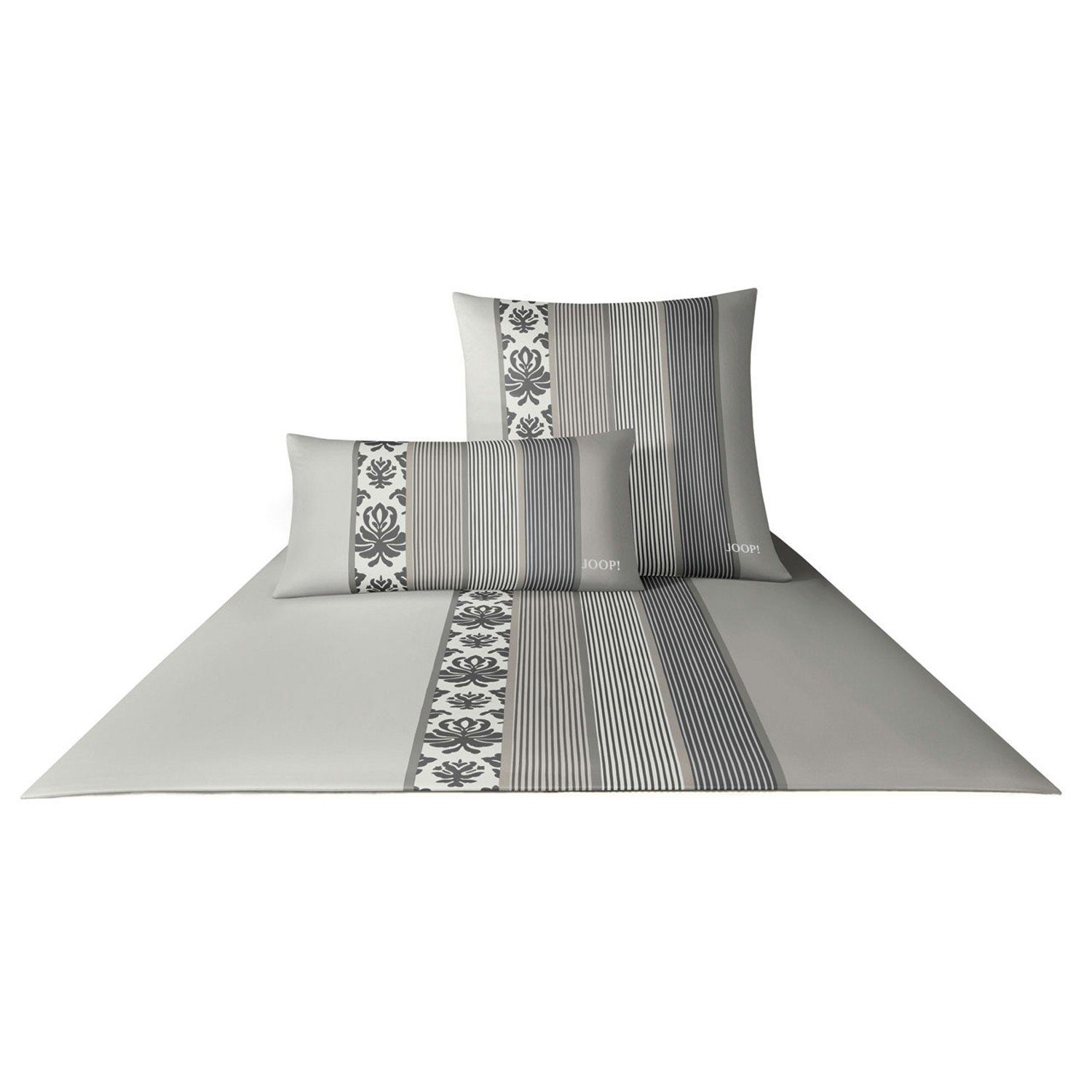 Die Mako-Satin Bettwäsche JOOP! Ornament Stripe besteht aus 100% Baumwolle. Elegante Ornamente und Streifen zieren diese Bettwäsche, die in wunderschönen Farben erhältlich ist.