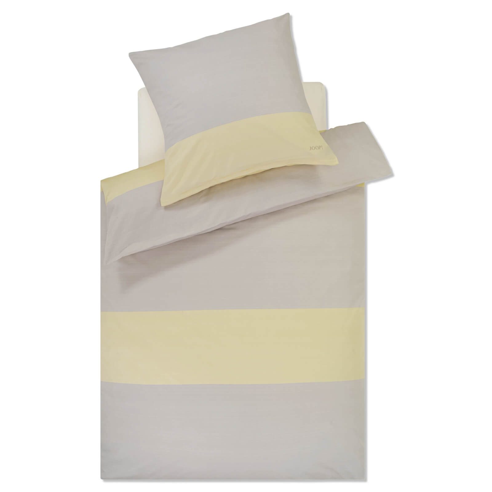 Diese hochwertige Bettwäsche der Edelmarke JOOP aus 100 Prozent Baumwolle besticht durch ein elegantes Design. Die Quer-Streifen-Optik der Garnitur überzeugt durch die harmonische Farbkombination aus hellem Grau und einem edlen Vanilleton bringt zeitlose Eleganz und Geradlinigkeit in Einklang. Die Bettwäsche mit angenehm glatter und anschmiegsamer Oberfläche ist sehr hautsympathisch und schafft ein erstklassiges Ambiente in Ihrem Schlafzimmer. Träumen Sie in diesem luxuriösen Schmuckstück und genießen Sie erholsame Nächte in höchster Qualität.