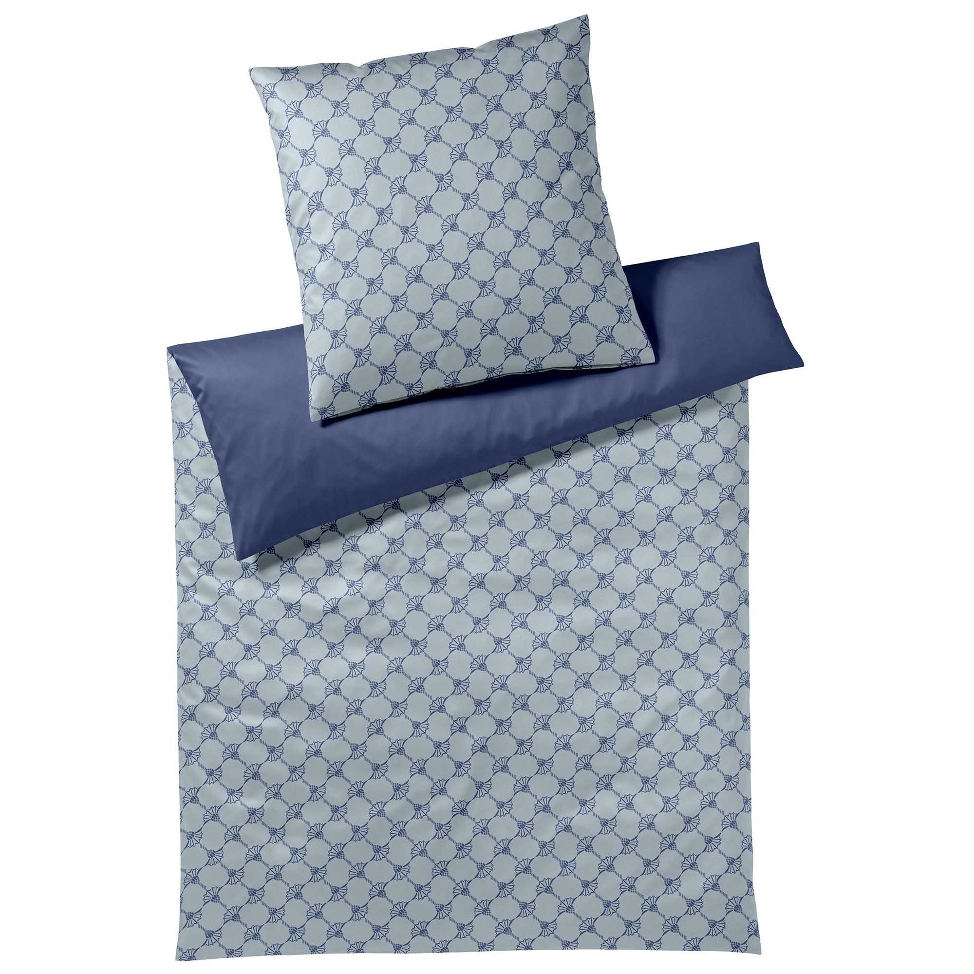 Bettwäsche "Cornflower Double" der Marke JOOP! Wendeoptik mit eingewebtem Kornblumen-Allover, Rückseite einfarbig mit feinen Webstreifen. Hochwertiger Qualitäts-Reißverschluss.