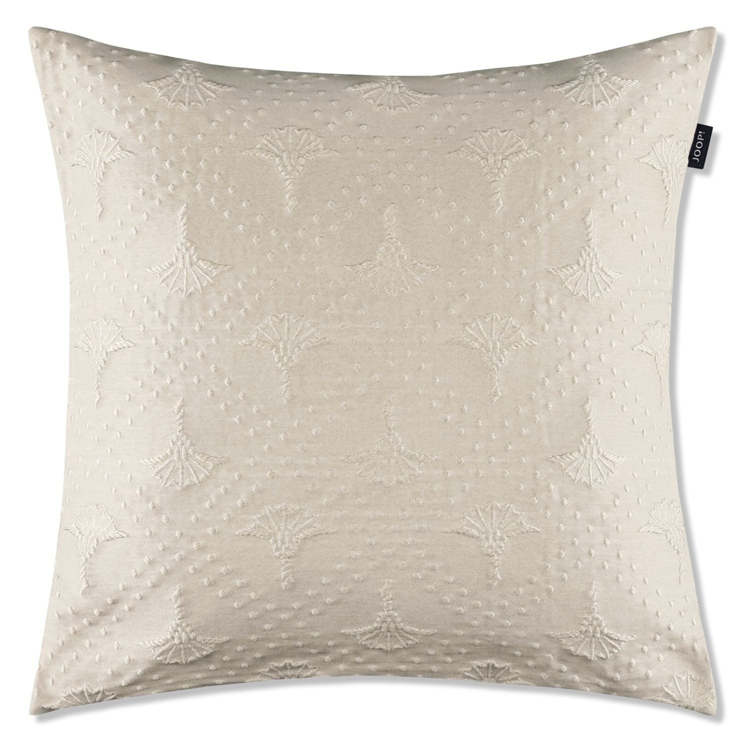 Die silbergraue Kissenhülle CORNFLOWER CHARM der Marke JOOP! misst 40 x 40 cm und besteht aus einem hochwertigen Mischgewebe aus Polyester und Baumwolle. Sie ist mit einem Reißverschluss ausgestattet, der ein einfaches Beziehen ermöglicht. Vorder- und Rückseite zeigen ein elegantes Logo-Muster in Jacquard-Qualität und sorgen für einen stilvollen Look. Die Kissenhülle wird als Einzelstück geliefert; das passende Inlett ist separat erhältlich. Ideal als dekoratives Wohnaccessoire für Sofa oder Bett.