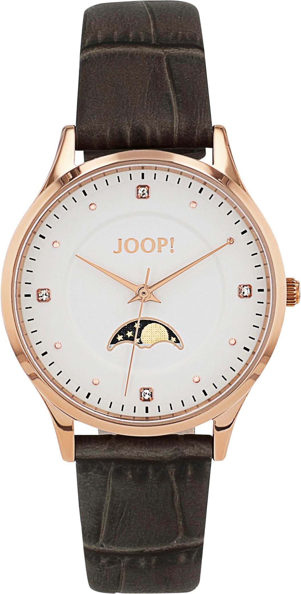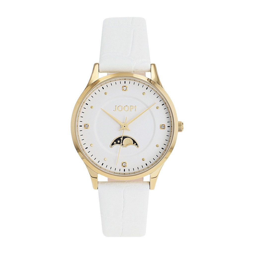 Besondere Merkmale | Armbanduhr, Damenuhr, Lederarmband, analog,Zirkonia (synth.),Mondphase |