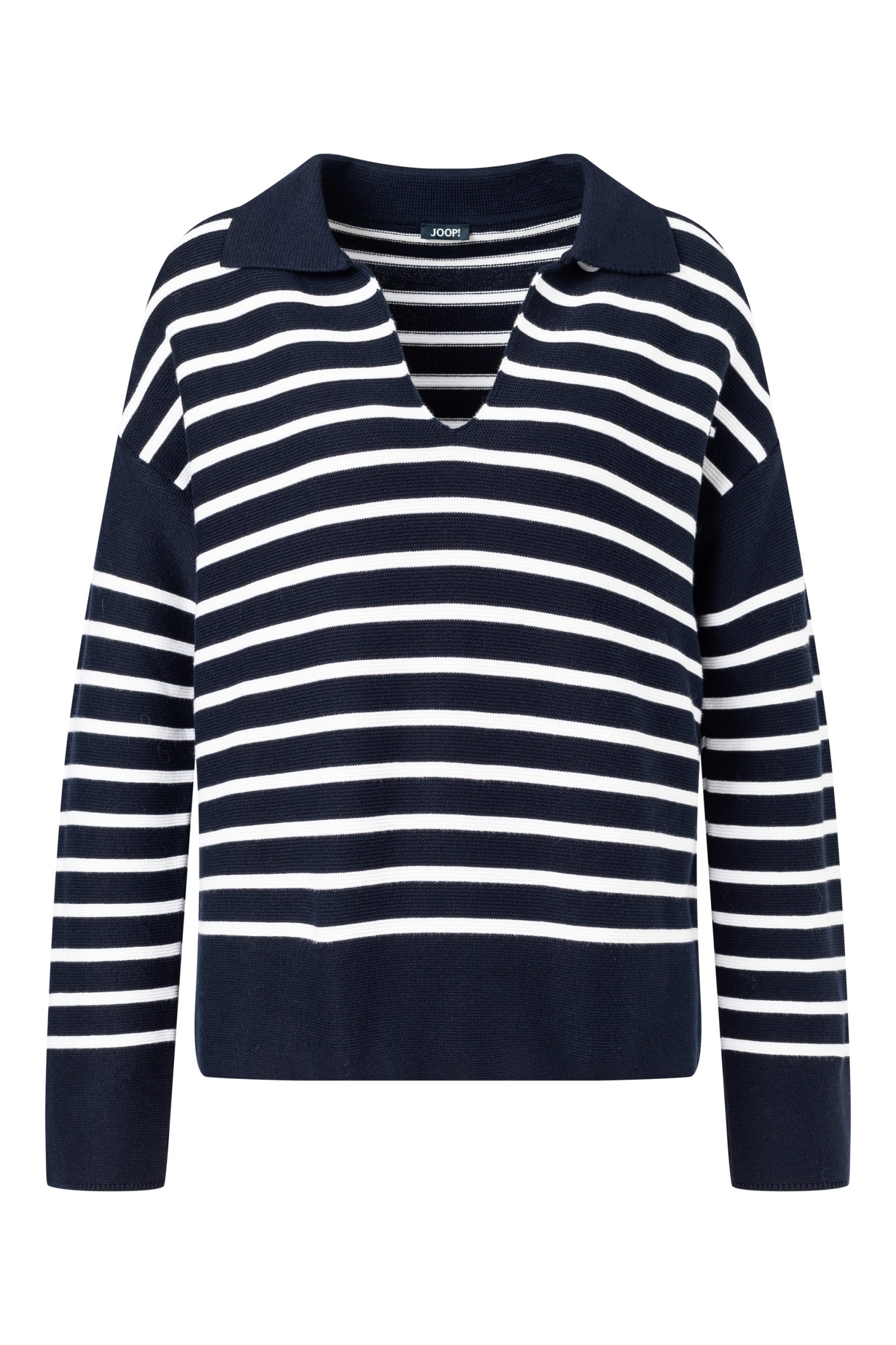 Strickpullover Kendel von JOOP!Wenn es draußen kälter wird, ist es Zeit, sich in etwas Gemütliches zu hüllen, das auch stilvoll aussieht. Der Strickpullover Kendel von JOOP! ist genau das Richtige für solche Tage. Mit seinem lässigen Schnitt und dem klassischen Streifenmuster bietet dieser Pullover nicht nur Komfort, sondern auch einen zeitlosen Stil, der zu fast allem in deinem Kleiderschrank passt.Perfekt für jeden TagDer Kendel Pullover ist aus 100% reiner Baumwolle gefertigt, was ihn unglaublich weich und atmungsaktiv macht. Egal, ob du einen entspannten Tag zu Hause planst oder einen Kaffee in der Stadt trinken gehst, dieser Pullover hält dich warm und fühlt sich dabei fantastisch auf der Haut an.Stil trifft auf KomfortDer Rundhalskragen und der V-Ausschnitt verleihen eine moderne Note und machen den Pullover vielseitig kombinierbar – sei es unter einer Jacke oder über einem Hemd. Der lockere Schnitt sorgt dafür, dass du dich den ganzen Tag über frei bewegen kannst, ohne dass etwas zwickt oder zwackt.Ein Must-Have für Deine GarderobeDas dezente, aber auffällige Streifenmuster fügt eine zusätzliche Dimension hinzu, die den Kendel Pullover von anderen Basic-Pullovern abhebt. Es ist die perfekte Balance zwischen lässig und schick, was ihn zu einem idealen Begleiter für verschiedene Anlässe macht. 100% Baumwolle für höchsten Tragekomfort Lockerer Schnitt für eine entspannte Passform Stilvolles Streifenmuster V-Ausschnitt und Rundhalskragen für vielseitige Styling-Optionen Ideal für die Übergangszeit und kühle TageVerwöhne dich mit dem Strickpullover Kendel von JOOP! und genieße die perfekte Kombination aus Stil und Komfort. Dieser Pullover wird sicher schnell zu deinem neuen Lieblingsstück!