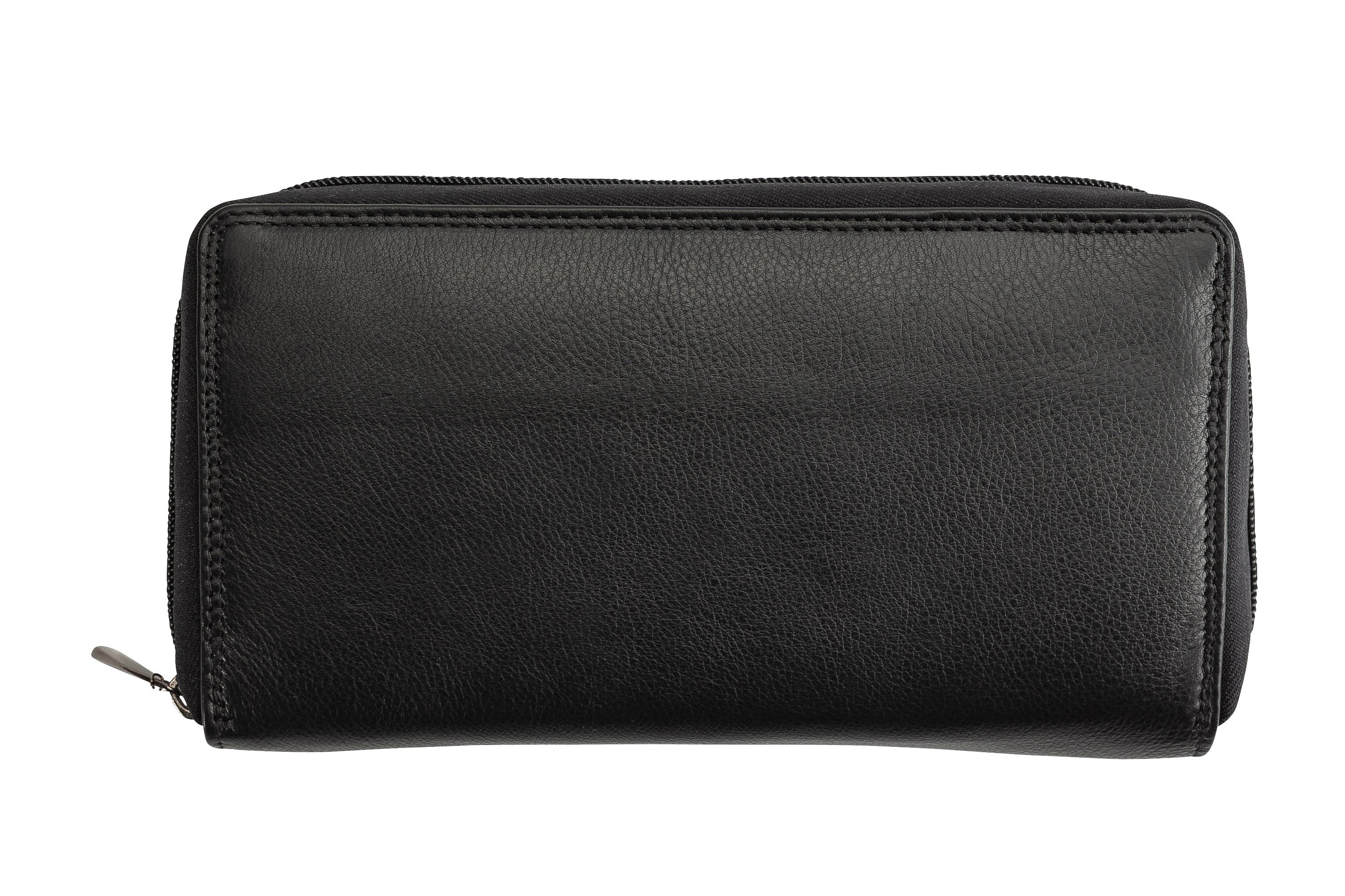 Leder Geldbörse Modell Nr.: 946 10 ALL IN ONE Schwarz RFID, mit bis zu 36 Karten, endlich mal genügend Kartenfächer. Liegt gut in der Hand. Die LederGeldbörse im Langformat wurde liebevoll aufwändig mit eingezogenen Nähten hergestellt. So hat die Geldtasche an den Rändern keine offenen Schnittkanten, bleibt weich und das Leder "franselt" Ihnen an den Rändern nicht aus. Die wichtigen Außennähte wurden in Doppelnaht ausgeführt. Klappen Sie das Portemonnaie auf, haben Sie sofort Übersicht über 30 Kartensteckfächer. Durch 3 lange Steckfächer, die über die gesamte Breite und Tiefe des Geldbeutels geführt sind, können Sie bequem Geldscheine und Belege voneinander trennen. Zusätzlich gibt es 2 etwas größere Steckfächer, die sich mit den seitlichen Flanken über die Dehnfalten regulieren. Aus der Josephine Osthoff Collection. Sehr schöne Verarbeitung. Der rote Reisepass mit den Maßen 9,5 cm x 13,1 cm kann bequem in der ALL IN One mitgeführt werden. Maße: 20,4 cm x 10,7 cm x 4 cm 300 g.