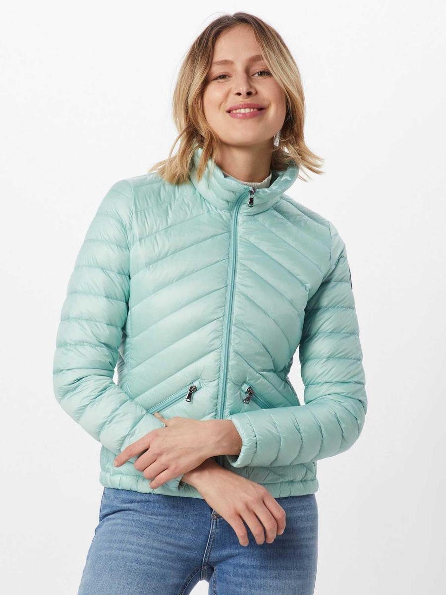 Zeitlos schöne und kurz geschnitte Daunenjacke der Marke JOTT. Das Modell überzeugt durch den femininen Schnitt und hoher Funktionalität. Diagonal verlaufende Steppungen, Passformnähte und schräge eingesetzte Zippertaschen prägen das cleane Erscheinungsbild der Jacke. Um auch an windigen Tagen wetterfest unterwegs sein zu können, wurde ein gefütterter Stehkragen und elastische Bündchen an den Armen und im Saum verarbeitet.
