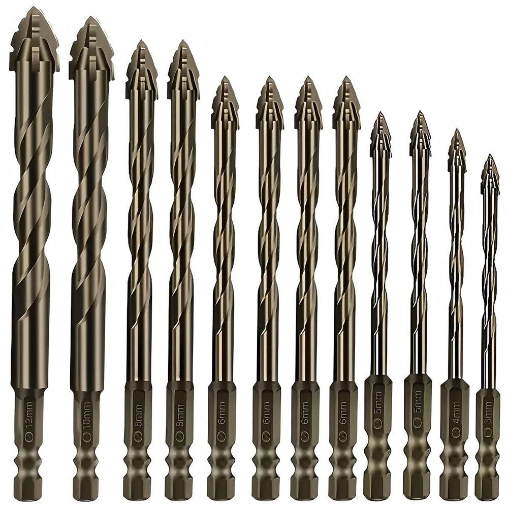 Das Set enthält insgesamt 12 Bohrer mit unterschiedlichen Durchmessern von 3 mm bis 12 mm (3/4/5/6/8/10/12 mm), die den Bohranforderungen für unterschiedliche Öffnungsgrößen und Anwendungsszenarien gerecht werden.