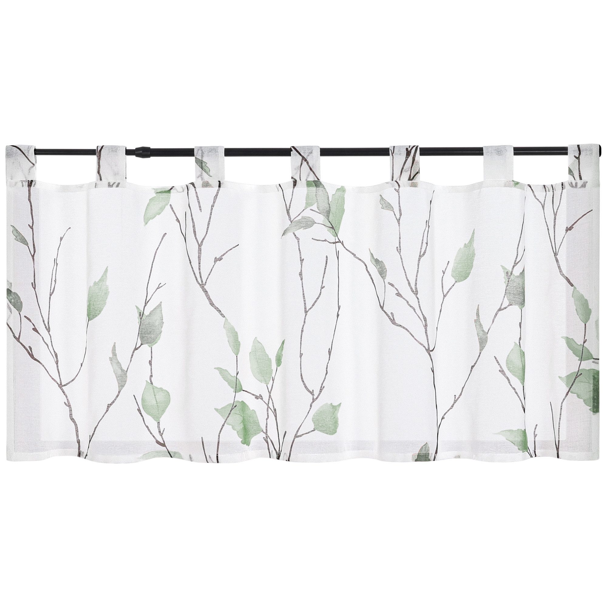 (1 St), Schlaufen, transparent, Voile Landhausstil Weiß Kurzstores mit Blatt- und Blumenmuster