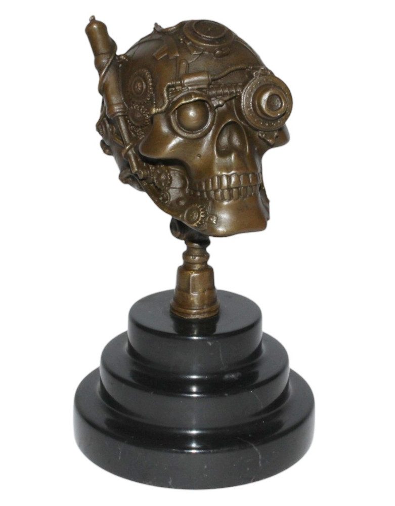 Detailreiche Bronzeskulptur Deko Skulptur Steampunk Schädel Skelett für Innen- und Außenbereiche.
