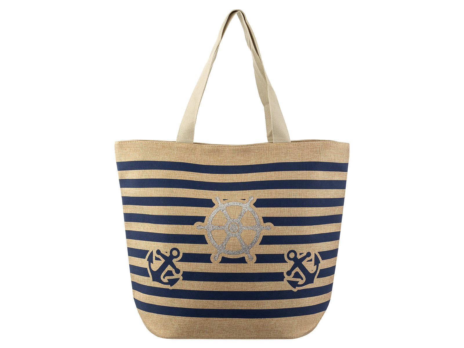 Ausstattung: •Hauptfach mit Reißverschluss •innen ein Steckfach •zwei lange Schultergurte •maritimes Motiv Maße: •Abmessungen: ca.55 x 43 x 21 cm (B x H x T) •Volumen: ca. 49 Liter •Gewicht: ca. 0,2 kg Material: •100% Polyester
