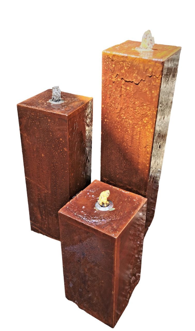 Gartenbrunnen Säulenbrunnen eckig 20/20 cm Höhen 40-100 cm Cortenstahl LED Garten