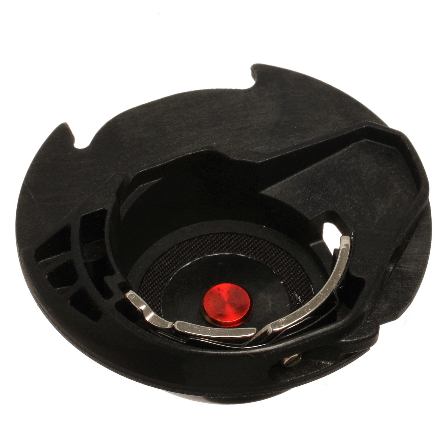Die Juki Spulenkapsel eignet sich ideal, wenn mit Kreativgarnen oder dicken Garnen gearbeitet wird. So kommen schöne Nähe mit stichtbaren Unterfaden oder kreative Zierstiche mit dekorativen Garnen besonders zur Geltung.