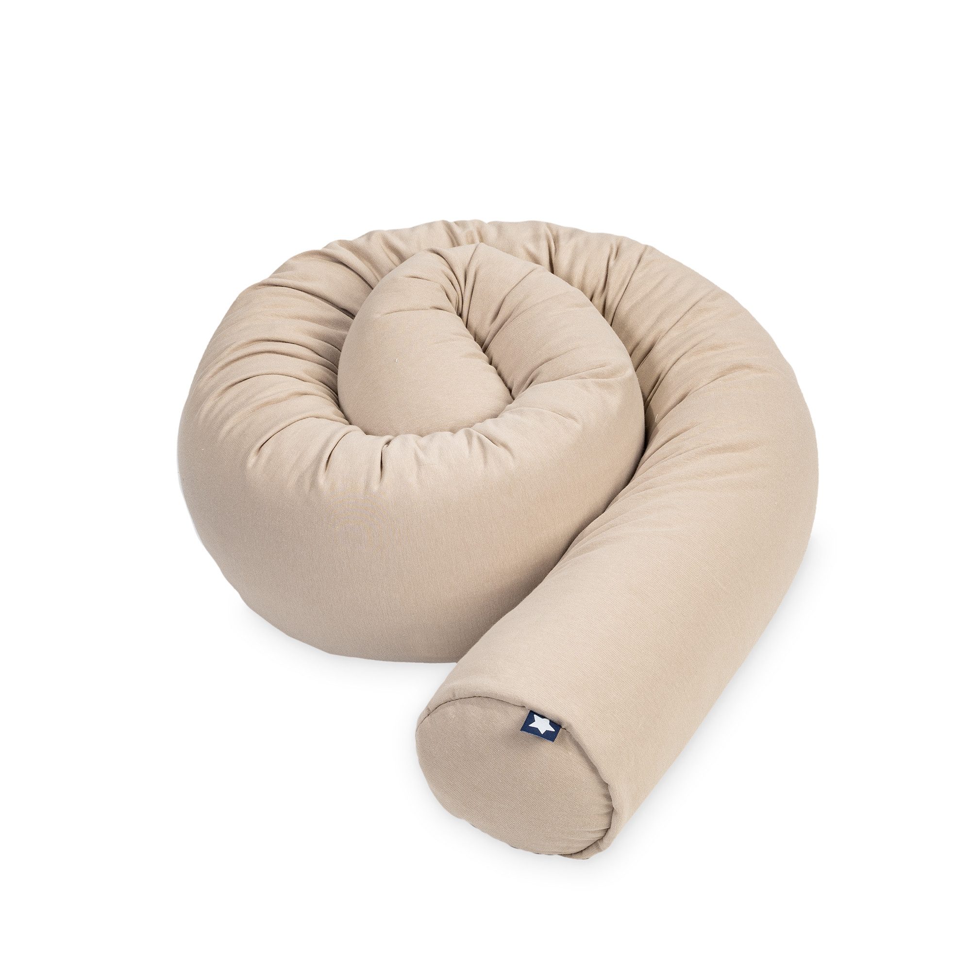 Unsere Bettschlangen schützen das Babyköpfchen vor den harten Stäben am Kinderbett und vor Zugluft. Sie sind zudem ein schönes Accessoire zum Spielen und Kuscheln. Das Nestchen besteht zu 100% aus Jersey-Baumwolle. Die Füllung ist aus Hohlfasern-Flocken (100%) Polyester). Das Nestchen ist für Kinderbetten mit dem Maßen 70x140 und 60x120 geeignet. Das Nestchen ist in der Waschmaschine im Schonwaschgang bei 40°C waschbar.