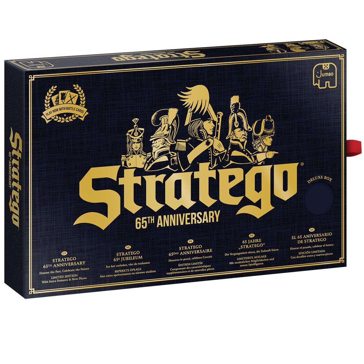 Diese Jubiläumsausgabe, die zur Feier des 65-jährigen Bestehens von Stratego in limitierter Auflage auf den Markt kommt, verleiht dem bekannten Spiel überraschende Wendungen. Dank der Spionin, die zum Feldmarschall befördert wurde, und der neuen weiblichen Rekruten neben den Männern können die Spieler und Spielerinnen jetzt ihre Truppen personalisieren. Sie können nach den Regeln von Stratego Original spielen oder eine völlig neue Spielmöglichkeit entdecken: Mit den Battle Cards können sie kühne Spielzüge ausprobieren, Überraschungsangriffe durchführen und ihre Verteidigung verstärken. Auch die luxuriöse Ausführung und schwerere, neu gestaltete Spielfiguren tragen dazu bei, dass mit dieser Ausgabe eine neue Seite in der Geschichte von Stratego geschrieben wird.