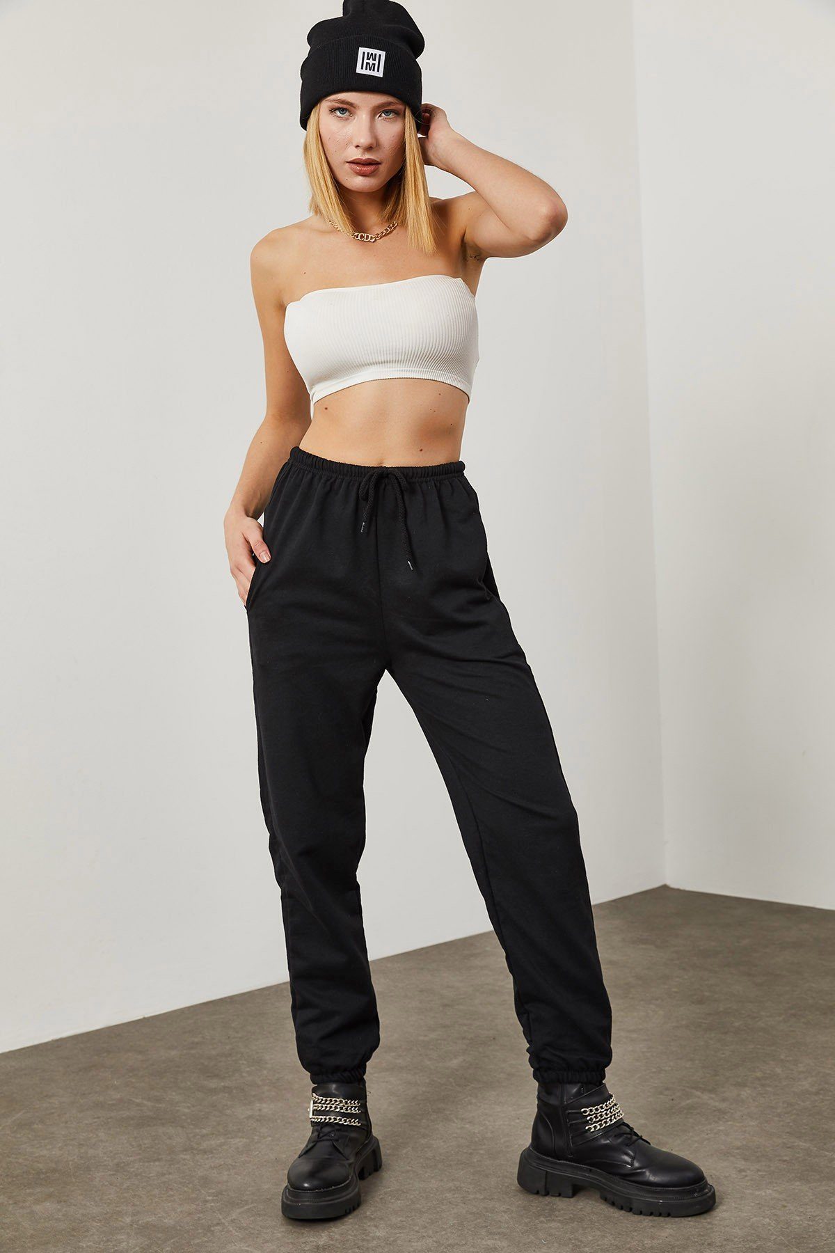 Die Farbe Schwarz wird seit jeher mit Raffinesse und Vielseitigkeit assoziiert. Unsere Jogginghose für Frauen kommt in einem eleganten Schwarz daher, das mühelos jedes Outfit ergänzt. Egal, ob Sie Besorgungen machen, zu Hause faulenzen oder sich mit Freunden auf einen Kaffee treffen, diese Jogginghose wird Ihren Stil aufwerten und dafür sorgen, dass Sie sich sicher und modisch fühlen.