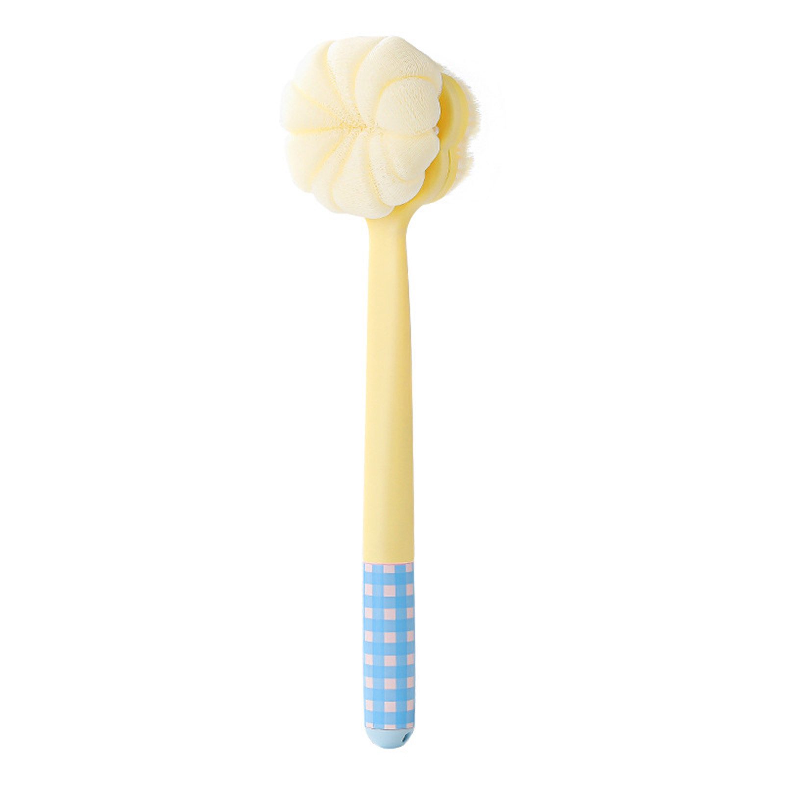 Mit ihrem trendigen Dopamin-Design setzt sie schon beim ersten Blick Akzente: Leuchtende Farben und liebevolle Muster strahlen Lebensfreude aus, machen das Erwarten eines Bades zu einem kleinen Highlight und versetzen Sie sofort in gute Laune. Diese Bürste ist mehr als nur ein Pflegewerkzeug – sie ist ein kleines Stück Glück, das Ihre Badewelt aufpeppt. Doch ihre Stärke liegt nicht nur in der Optik: Die duale Reinigungstechnologie macht sie zu einem wahren Allrounder. Auf der einen Seite glänzt die vergrößerte, extra dichte Badewolke: Sie entwickelt in Sekundenschnelle einen üppigen, luftigen Schaum, der Ihre Haut sanft umhüllt und Düfte intensiv freisetzt – für ein schäumiges, entspannendes Erlebnis, das Sie lieben werden. Auf der anderen Seite wartet eine Kombination aus weichen Nylonborsten und feinstem Schrubbtuch: Die Borsten sind optimal balanciert – weder zu hart noch zu weich –, reinigen tief in die Poren, entfernen Schmutz restlos und fühlen sich dabei extrem sanft auf der Haut an. Kein Kitzeln, kein Reizen – selbst empfindliche Haut profitiert von ihrer Zärtlichkeit. Das feine Schrubbtuch hingegen ist perfekt für hartnäckige Hornhaut und "Schlick": Es löst Überflüssiges mühelos, glättet trockene Stellen und sorgt für eine gründliche, aber schonende Reinigung – ohne zu schaben oder zu irritieren. Nutzen Sie die Vorteile des langen, ergonomischen Griffs: Er ermöglicht eine selbstständige, mühelose Reinigung auch schwer erreichbarer Bereiche wie dem Rücken. Vergessen Sie lästige Bitten um Hilfe – mit dieser Bürste wischen Sie mühelos jede Stelle sauber, und das ganze ohne Anstrengung. Und das ist noch nicht alles: Ein integrierter Fußfeiler an der Handhabung macht sie zu einem echten Multitasker – ideal für sanftes Entfernen von Hartnäckigen Hautablagerungen an den Füßen, ohne zusätzliche Werkzeuge zu brauchen. Hygiene und Ordnung gehen bei ihr Hand in Hand: Dank des praktischen Einhängeseils hängt sie bequem an der Wand, trocknet schnell und bleibt immer sauber. Keine mehrfeuchten Flächen, keine unordentlichen Ecken – Ihr Badezimmer bleibt stets im Griff. Diese Badbürste verwandelt das tägliche Baden in ein Wohlfühl-Ritual: Sie reinigt gründlich, pflegt sanft, macht Spaß und ist dabei noch extrem praktisch. Entdecken Sie, wie einfach und lustig Körperpflege sein kann – mit einem Produkt, das alles bietet, was Sie brauchen. Produktspezifikationen: Farbe: Gelb, Blau Größe: 38*9 cm Material: PP+PE Produktgewicht: ca. 205g Produktmerkmale: Weich, hautfreundlich, bequem Hinweise: Manuelle Messung, bitte erlauben Sie geringfügige Fehler bei der Größe.