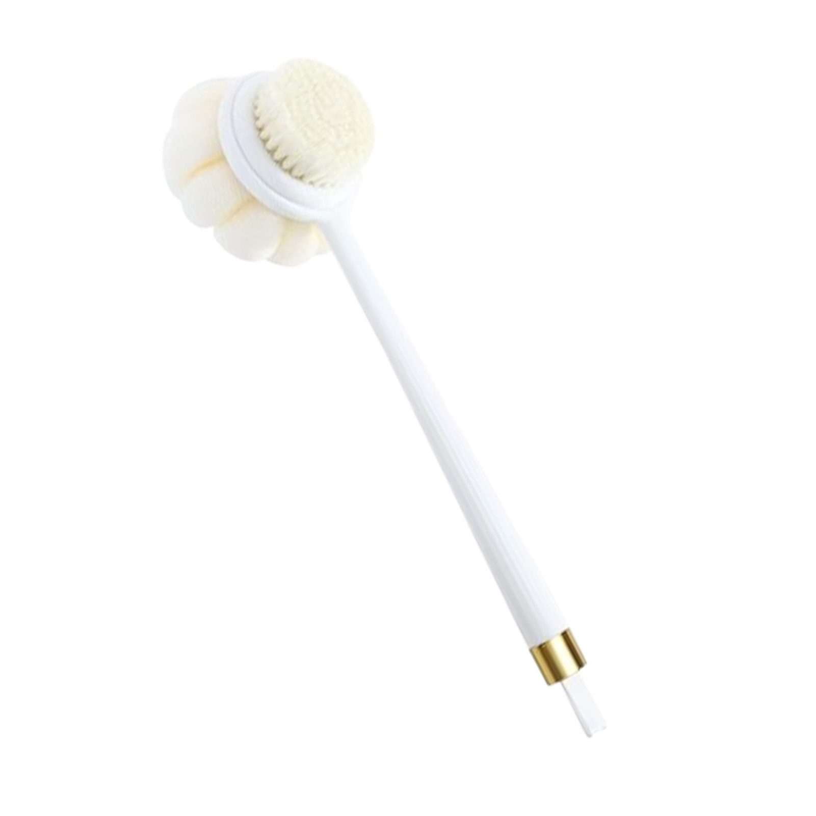 Zwei-in-einem Badepinsel mit langem Griff, Eine Seite für gründliche Reinigung, die andere für sanfte Massage. Optimaler Griffwinkel erreicht auch harte Rückenbereiche.