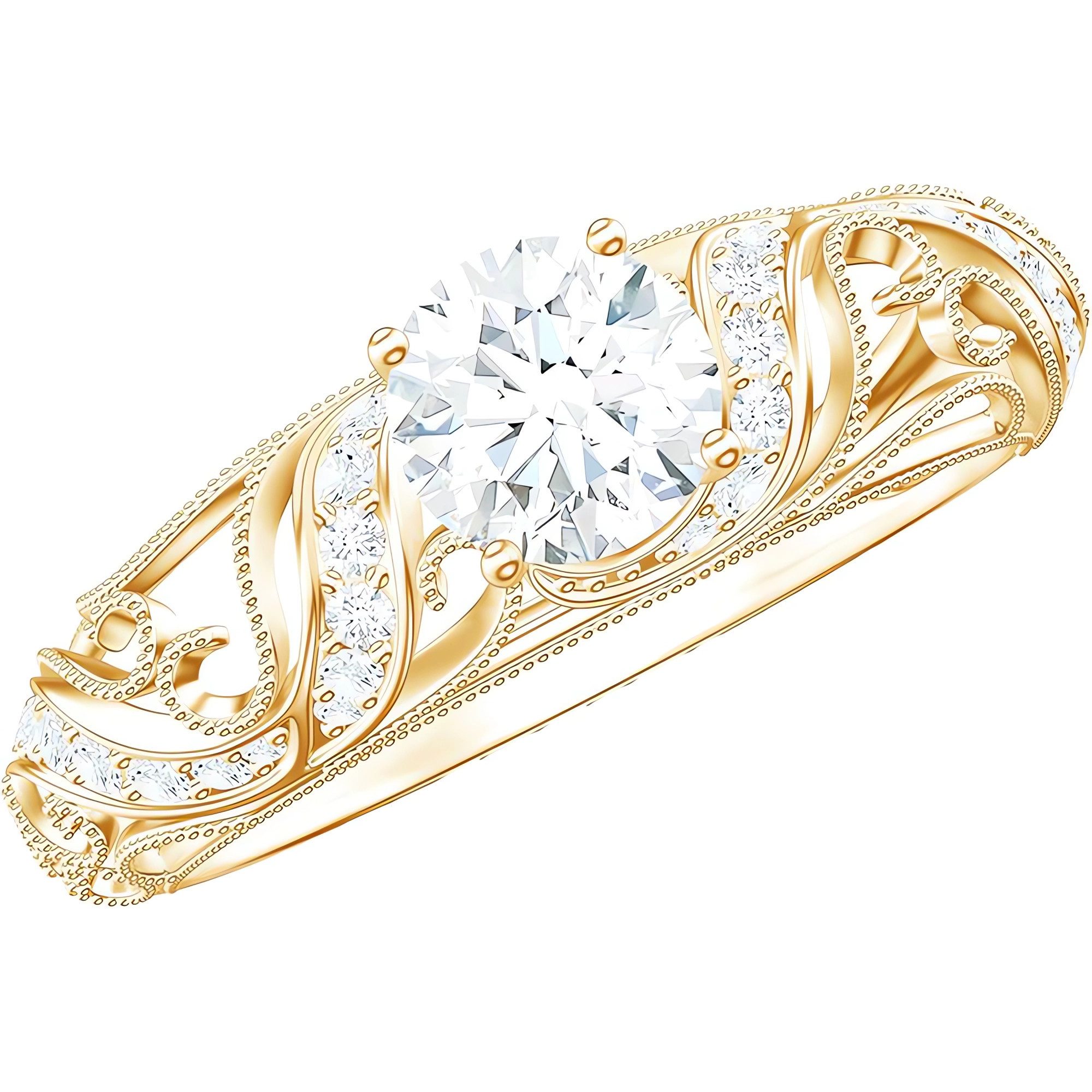 Um den Ring sind feine kleine Diamanten geschickt eingelegt, die wie Sterne um die Sonne den Hauptstein umgeben. Sie ergänzen einander, so dass der Ring von jeder Seite strahlt