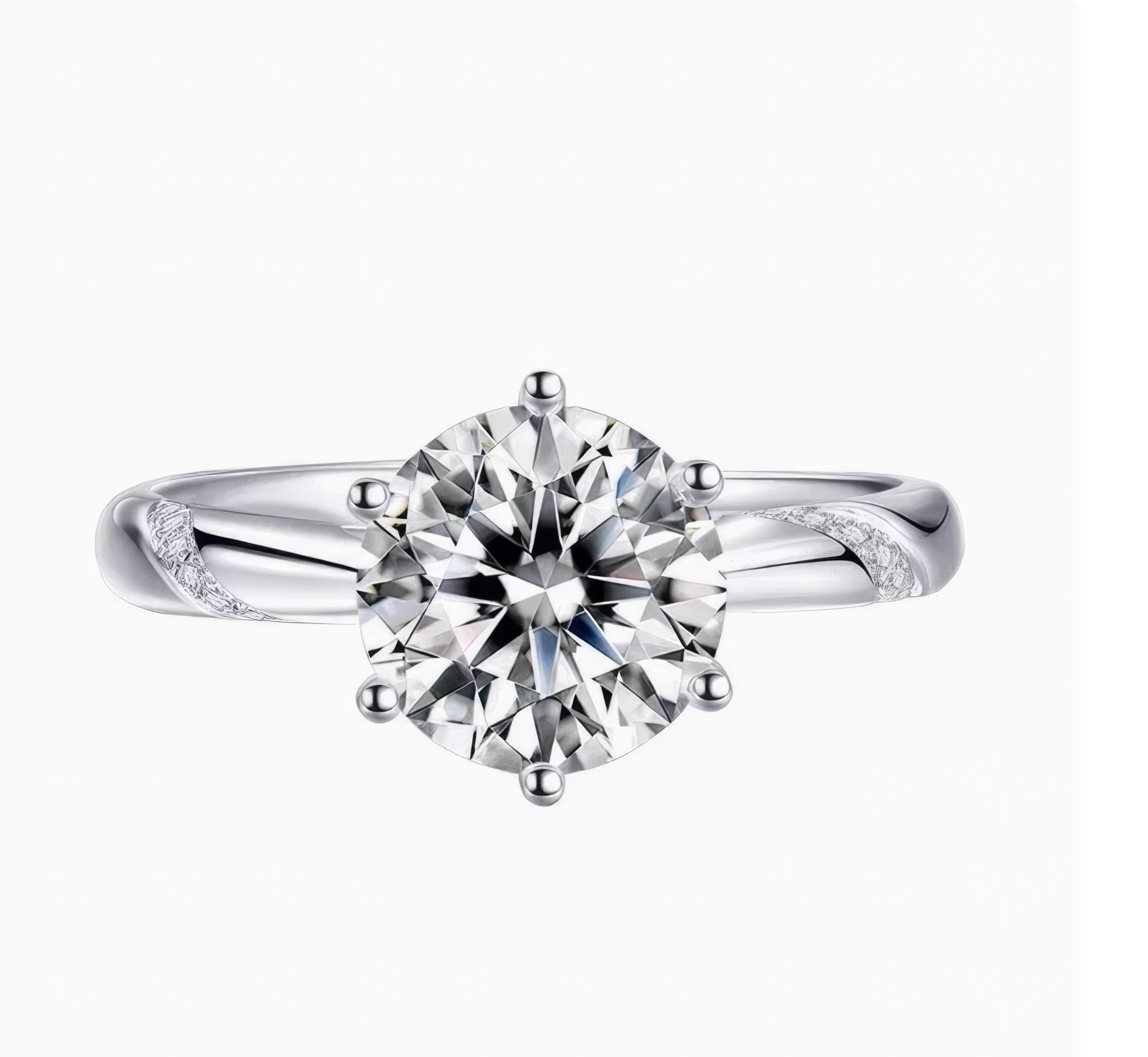 Der Ring ist mit Akzentsteinen verziert, die sich um das Band winden, und in dessen Mitte ein runder, im Labor gezüchteter Diamant sitzt, der Schönheit und Eleganz ausstrahlt.