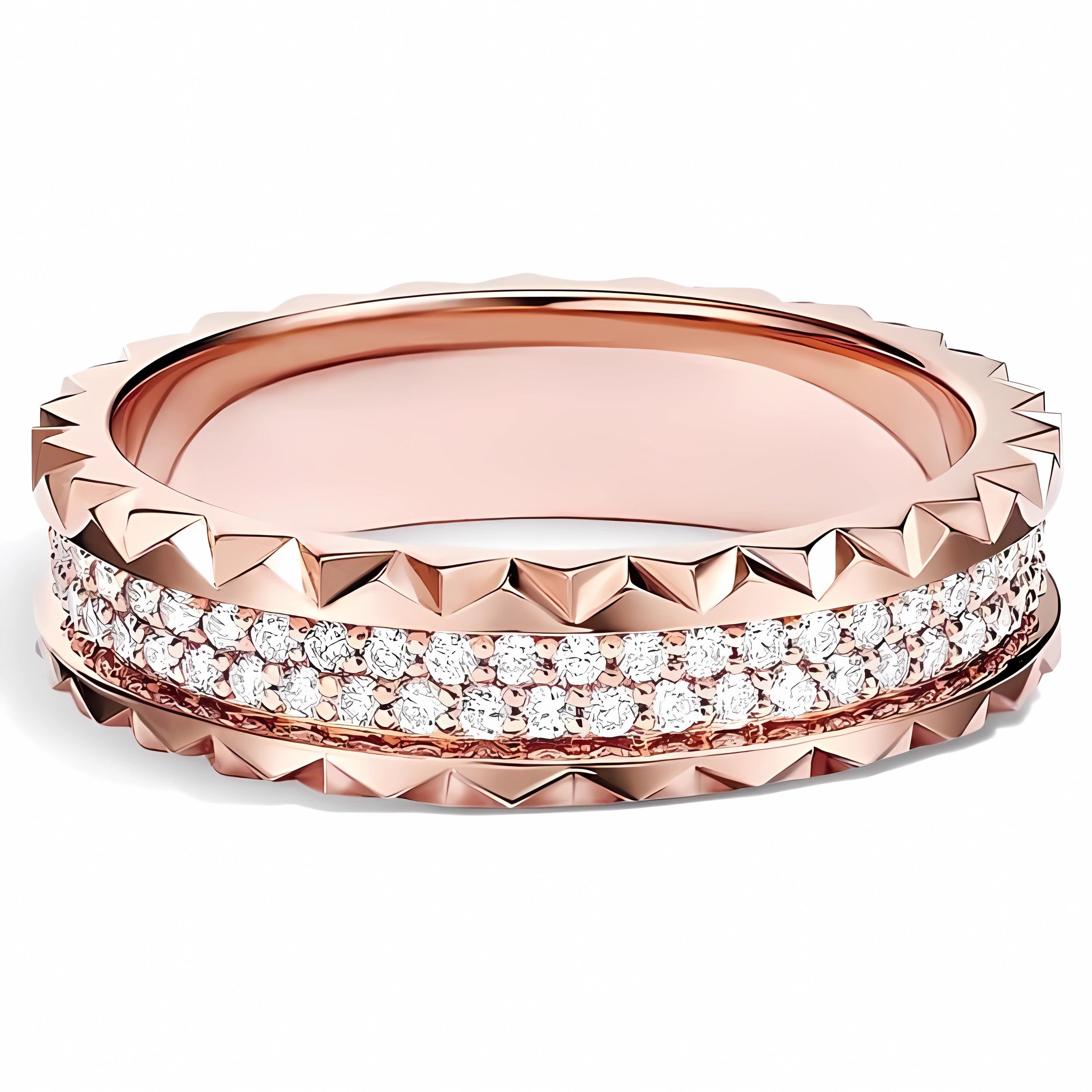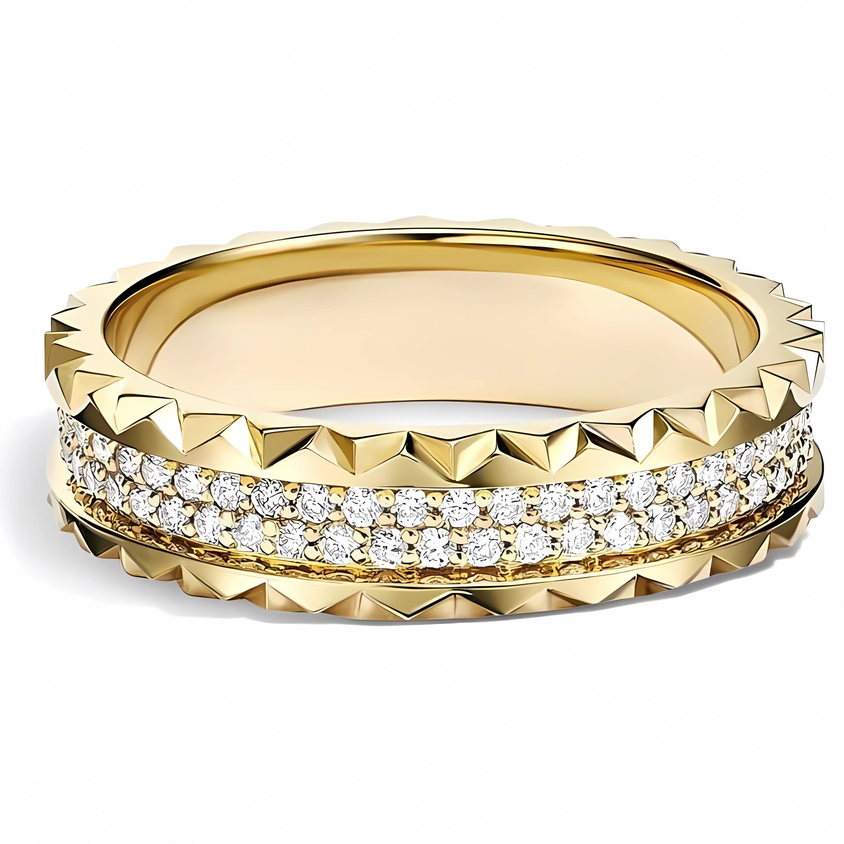 Der Ring hat spitzen, nagelartige Dekore am Rand und eine Mitte mit Lab - Diamanten besetzt, modern und einzigartig