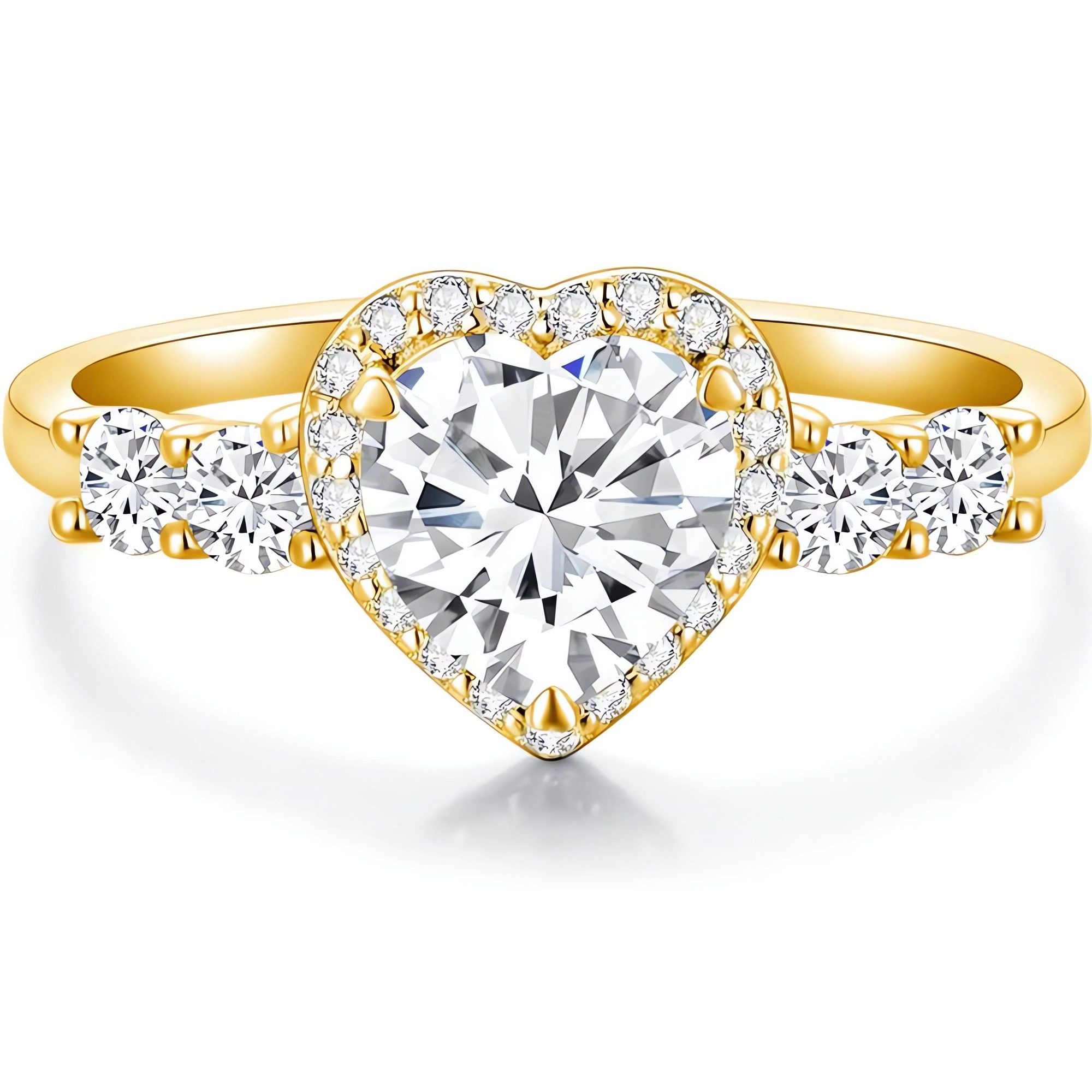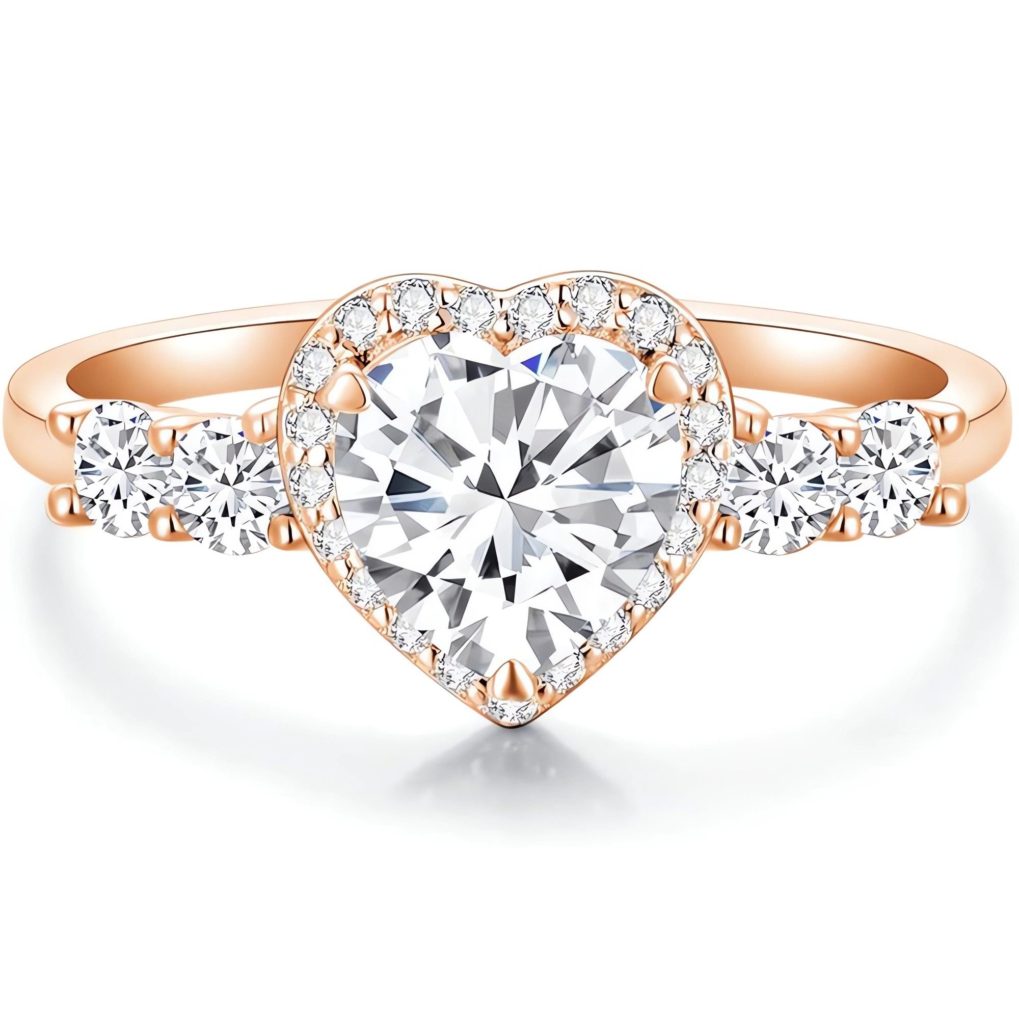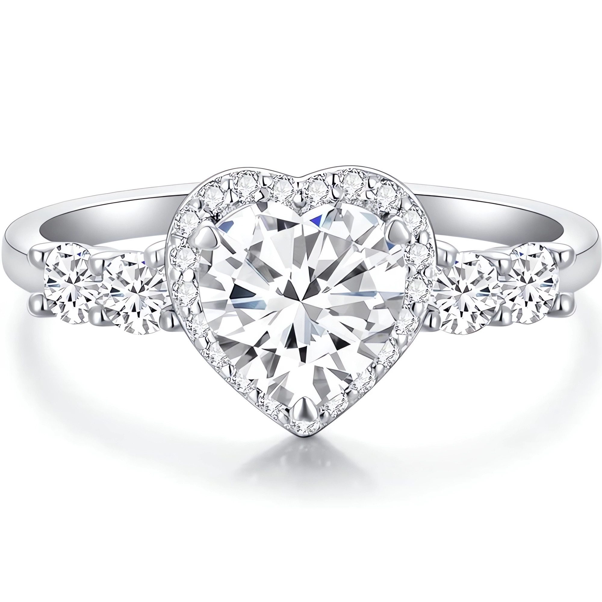 Der herzförmige Diamant in der Mitte ist in drei Karatgrößen erhältlich und sorgt zusammen mit den kleinen Diamanten um ihn herum für außergewöhnliche Brillanz und Feuer
