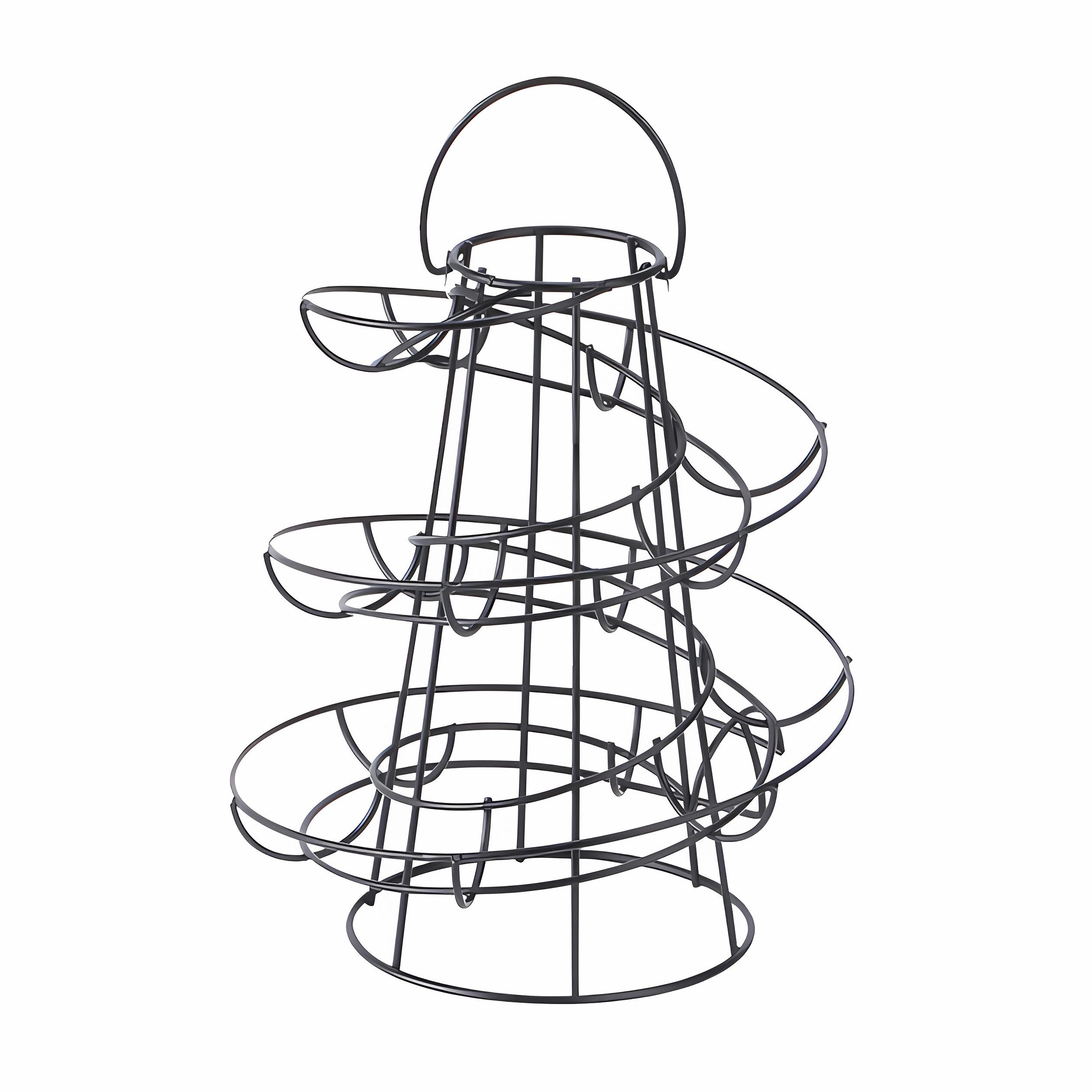 Dieser Eierbecher verfügt über eine offene Eisenkonstruktion, die eine freie Luftzirkulation ermöglicht und so Probleme wie Wasserdampfansammlung und Schimmelbildung auf der Eieroberfläche in geschlossenen Umgebungen verhindert, wodurch die Eier länger frisch bleiben. Der spiralförmige Eierhalter muss nicht kompliziert zusammengebaut werden, sondern ist sofort einsatzbereit, was Ihnen Zeit und Mühe spart und Ihnen ein neues Aufbewahrungserlebnis bietet. Das schlichte Design ist stilvoll und passt sowohl zu Instagram- und nordischem Stil als auch zu traditionellen Küchen. Stellen Sie ihn einfach auf die Arbeitsplatte, um den Stil Ihrer Küche sofort aufzuwerten und gleichzeitig Stauraum zu schaffen und den Raum zu dekorieren. Ein Gestell, viele Verwendungsmöglichkeiten: Stellen Sie es im Wohnzimmer als Obstkorb auf, nutzen Sie es im Eingangsbereich zur Aufbewahrung kleiner Gegenstände oder sogar als Blumenständer für Trockenblumen und entdecken Sie vielfältige ästhetische Möglichkeiten für Ihren Alltag. Produktdetails: Name: Kreativer spiralförmiger Eierhalter Material: Eisen Maße: 20 × 20 × 24 cm Farben: Schwarz, Silber