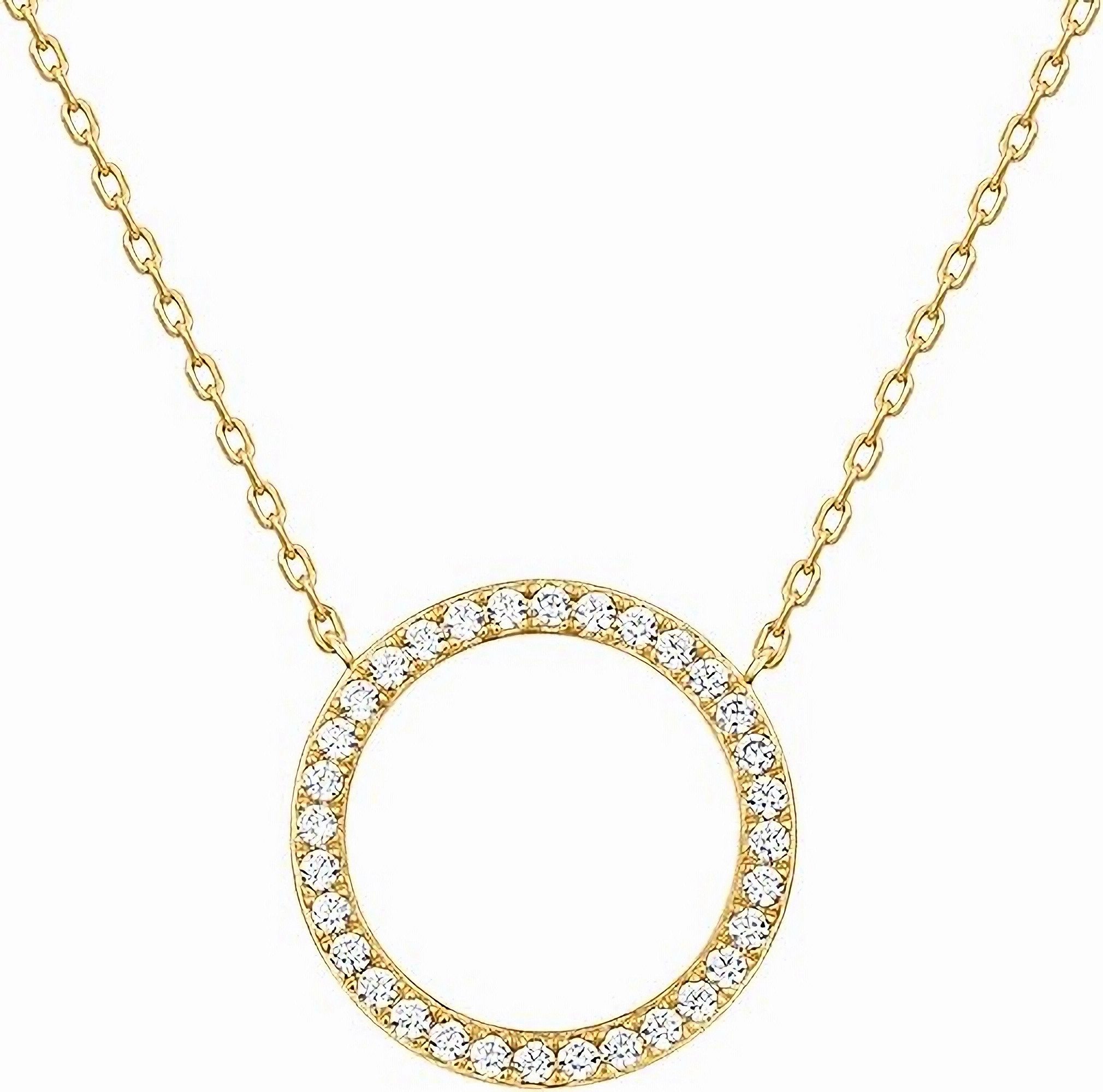 Diese schöne Halskette aus mit kleinen Diamanten besetzten Kreisen wirkt insgesamt schlicht und edel und lässt sich sehr gut mit Kleidung kombinieren