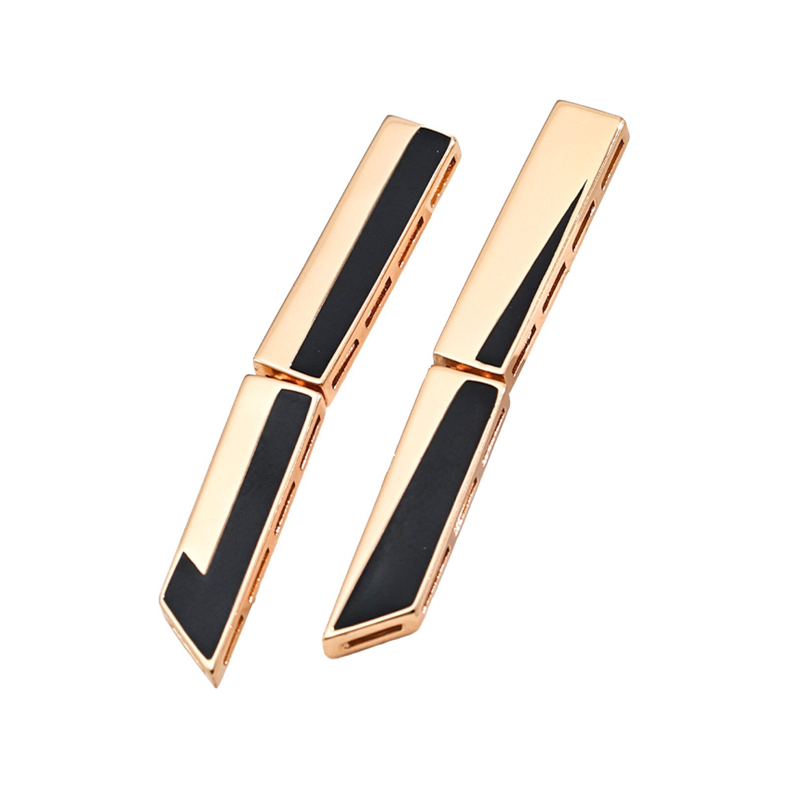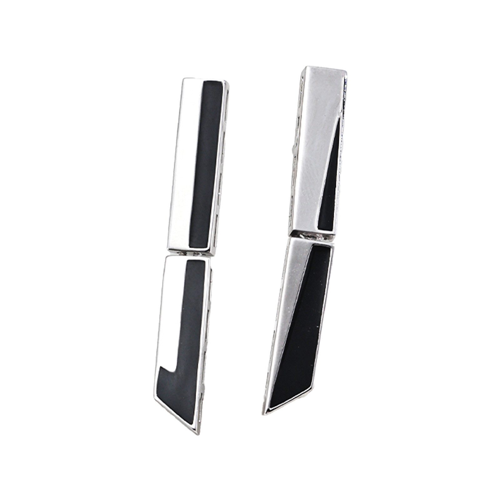 Die einzigartige längliche Form und das kontrastreiche Design in Schwarz und Silber machen diese Ohrringe zu einem Ausdruck Ihrer Persönlichkeit.