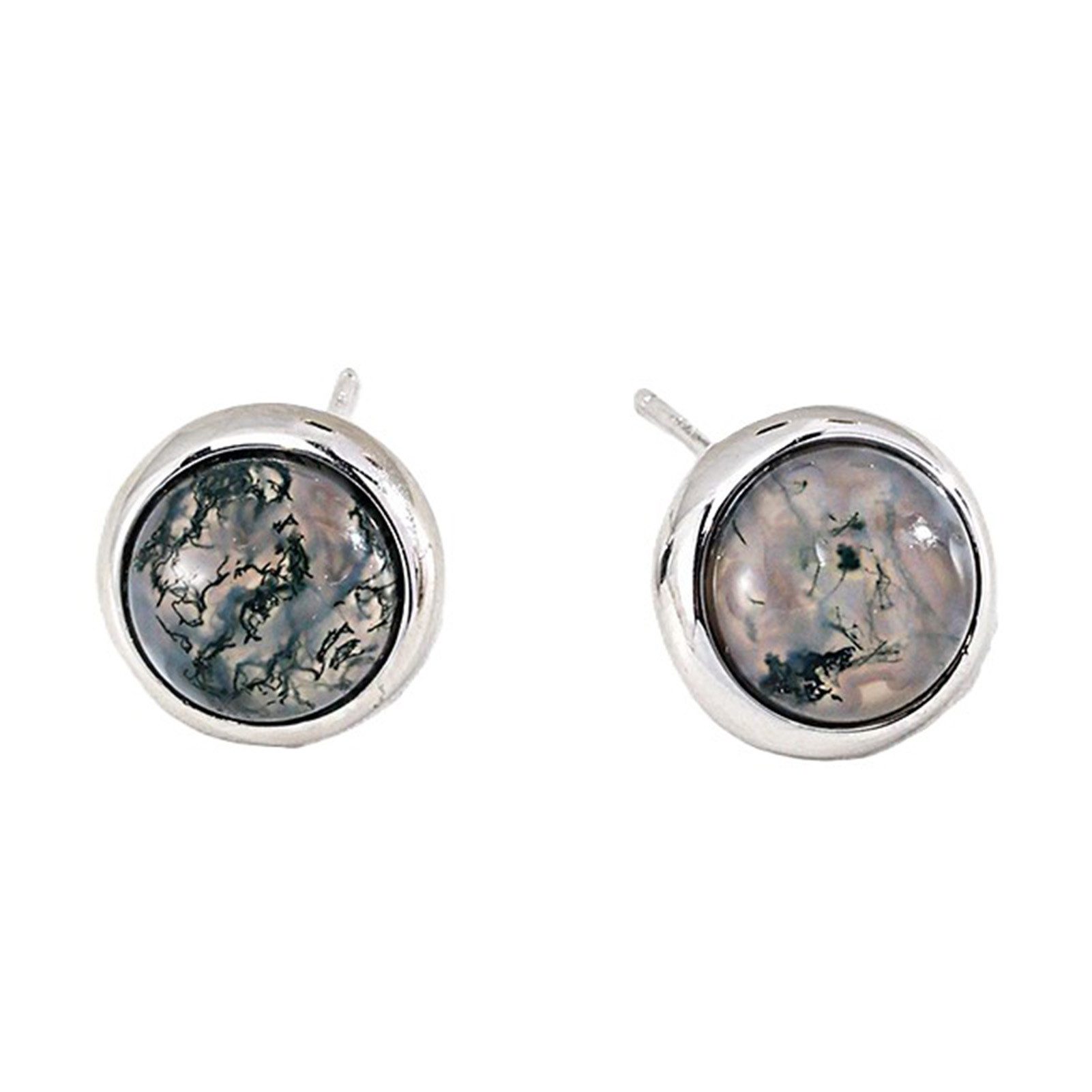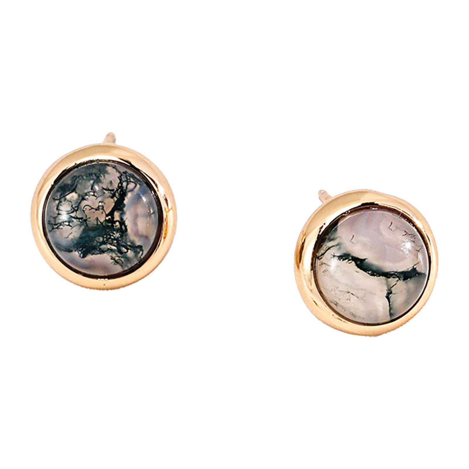 Die einzigartigen Texturen und Farben der runden Steine auf den Ohrringen, jeder mit einer anderen Maserung, sind wie eine einzigartige Signatur der Persönlichkeit der Trägerin.