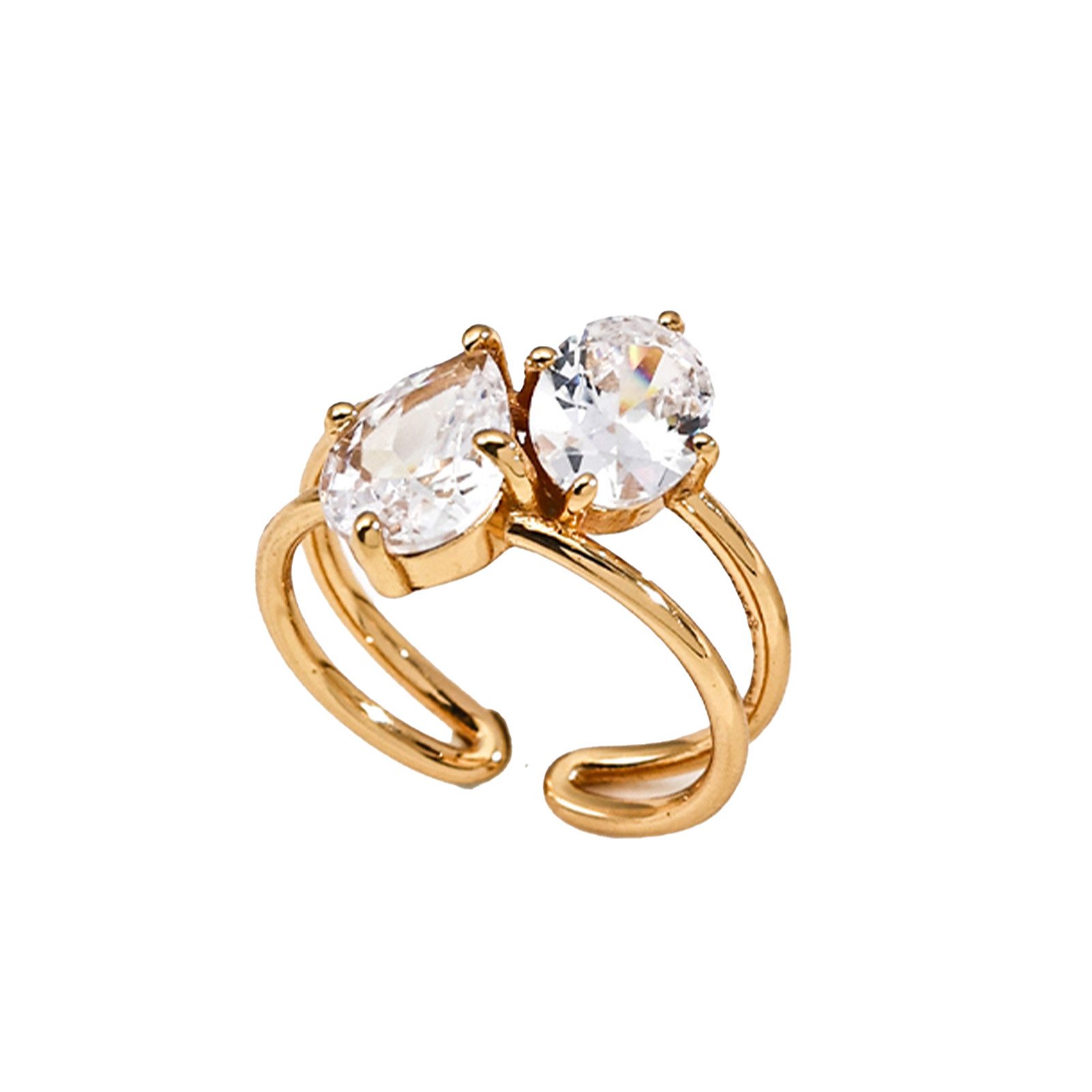 Das einzigartige Design mit zwei Edelsteinen, kombiniert mit dem funkelnden Glanz der Edelsteine und der metallischen Textur, wertet jedes Outfit auf.