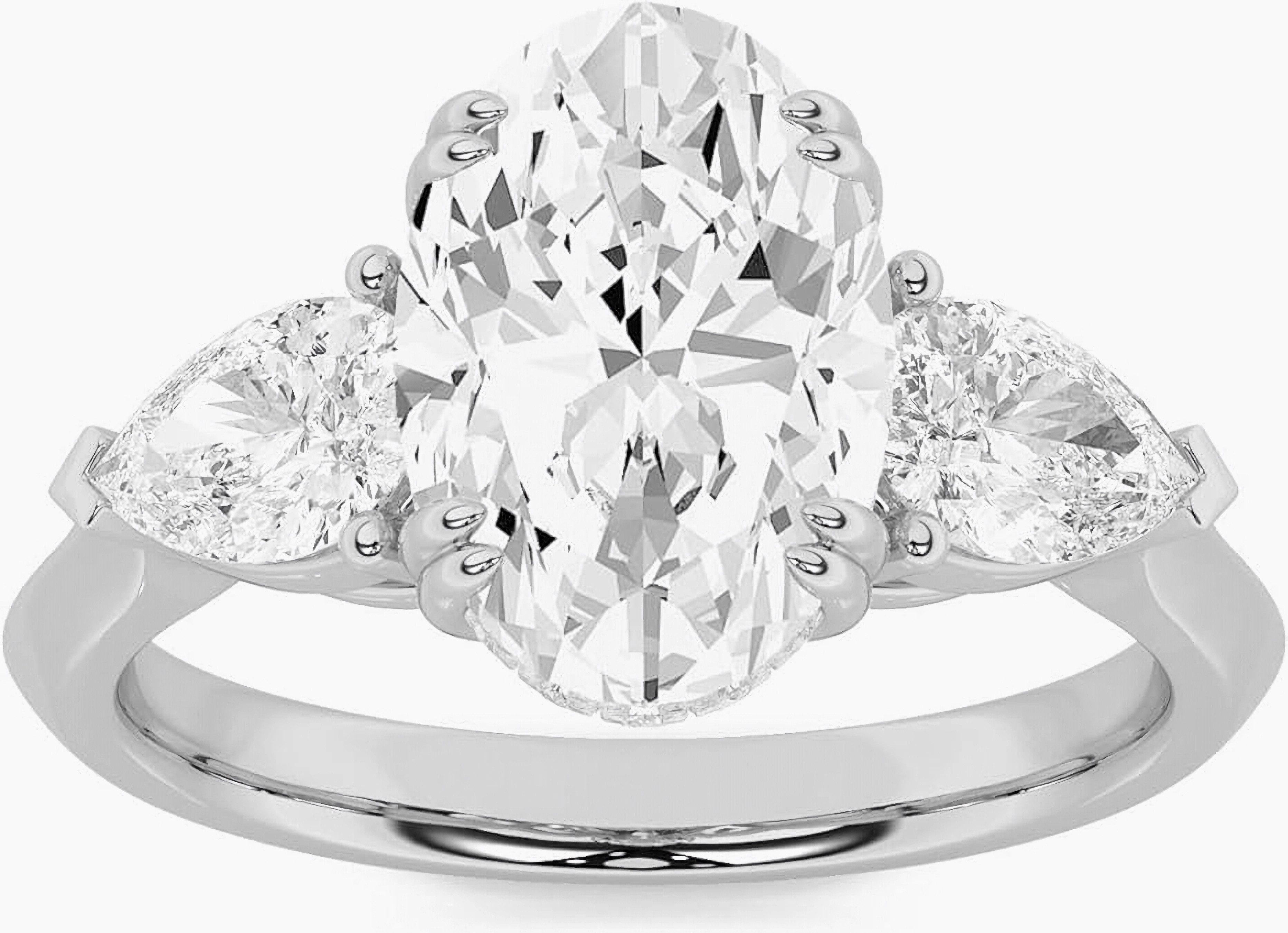 Material: Aus 14 Karat Gelbgold gefertigt und mit einem 3 Karat schweren ovalen Diamanten aus Laborzucht besetzt. Es ist außergewöhnlich langlebig