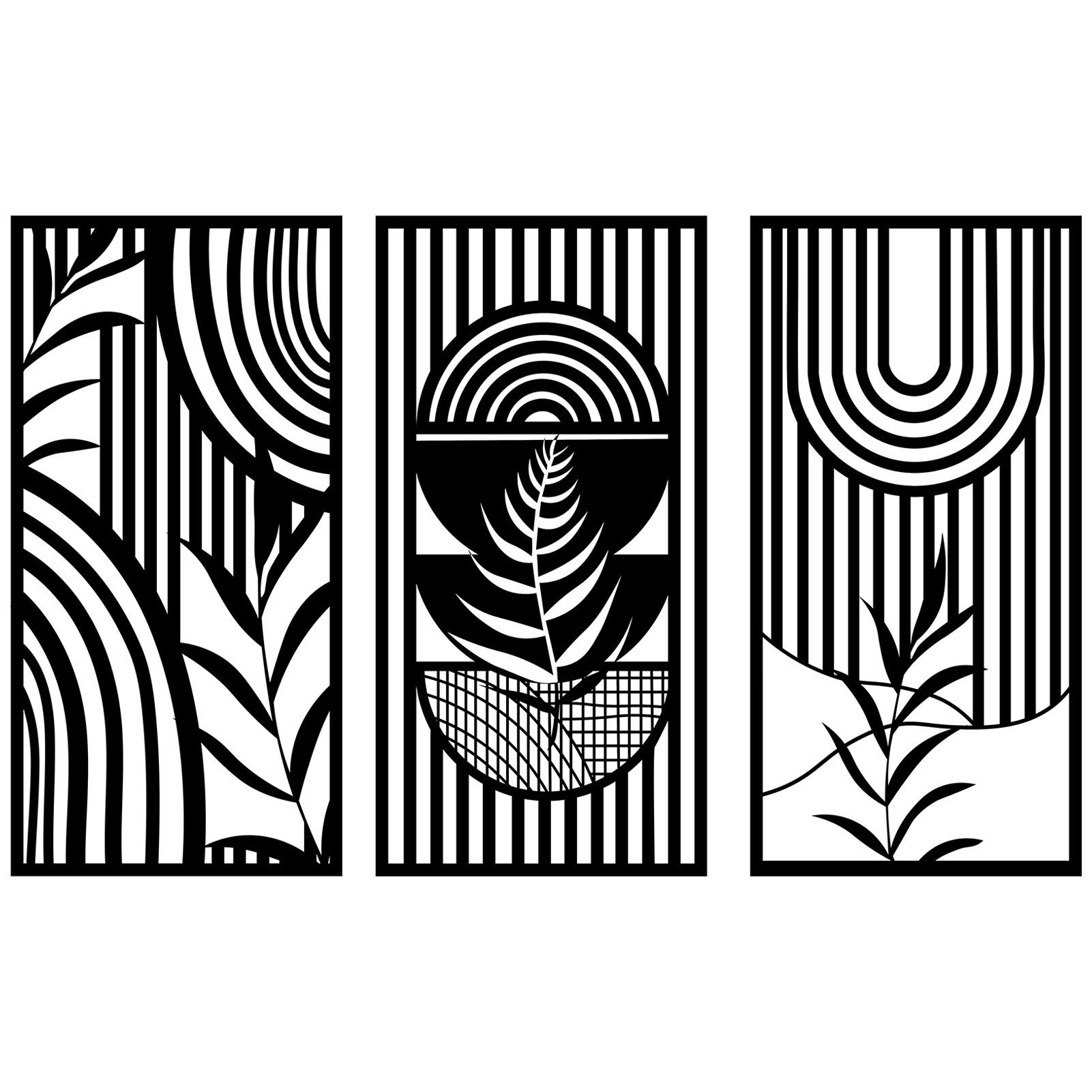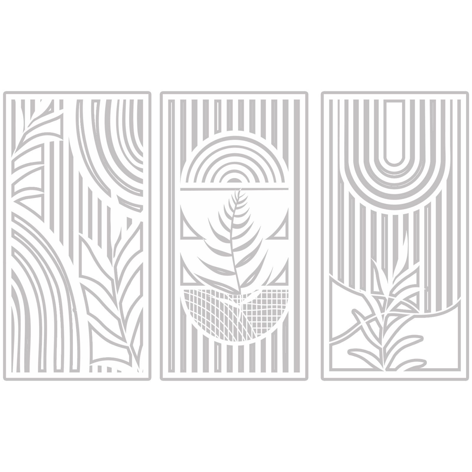 Hinweis Lieferumfang | 3 x Metall Wanddekoration mit Blättern und abstrakten Linien |