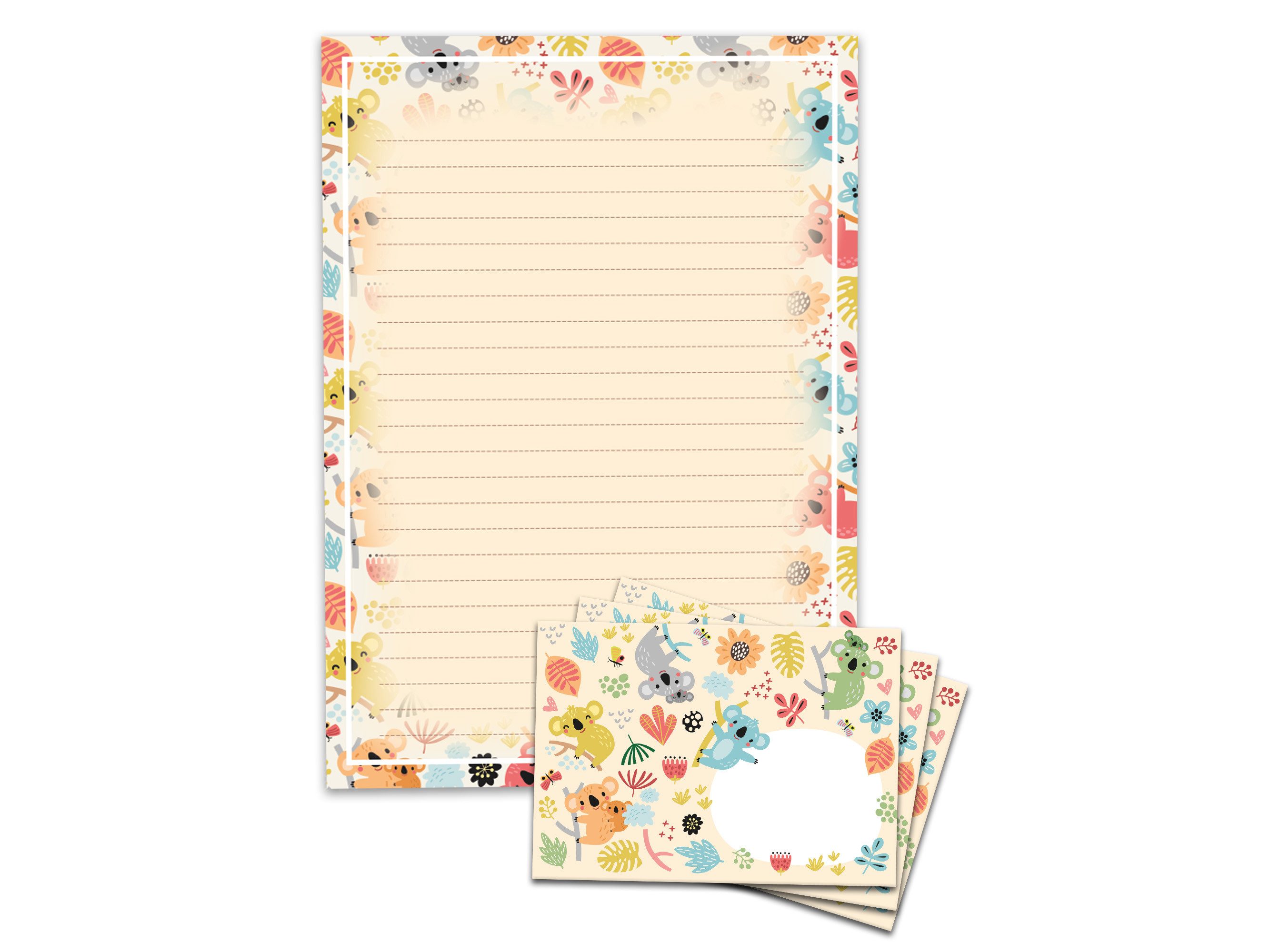 Briefpapier Set Kinder Briefblock A4 mit Umschlägen Notizblock Papier Koala
