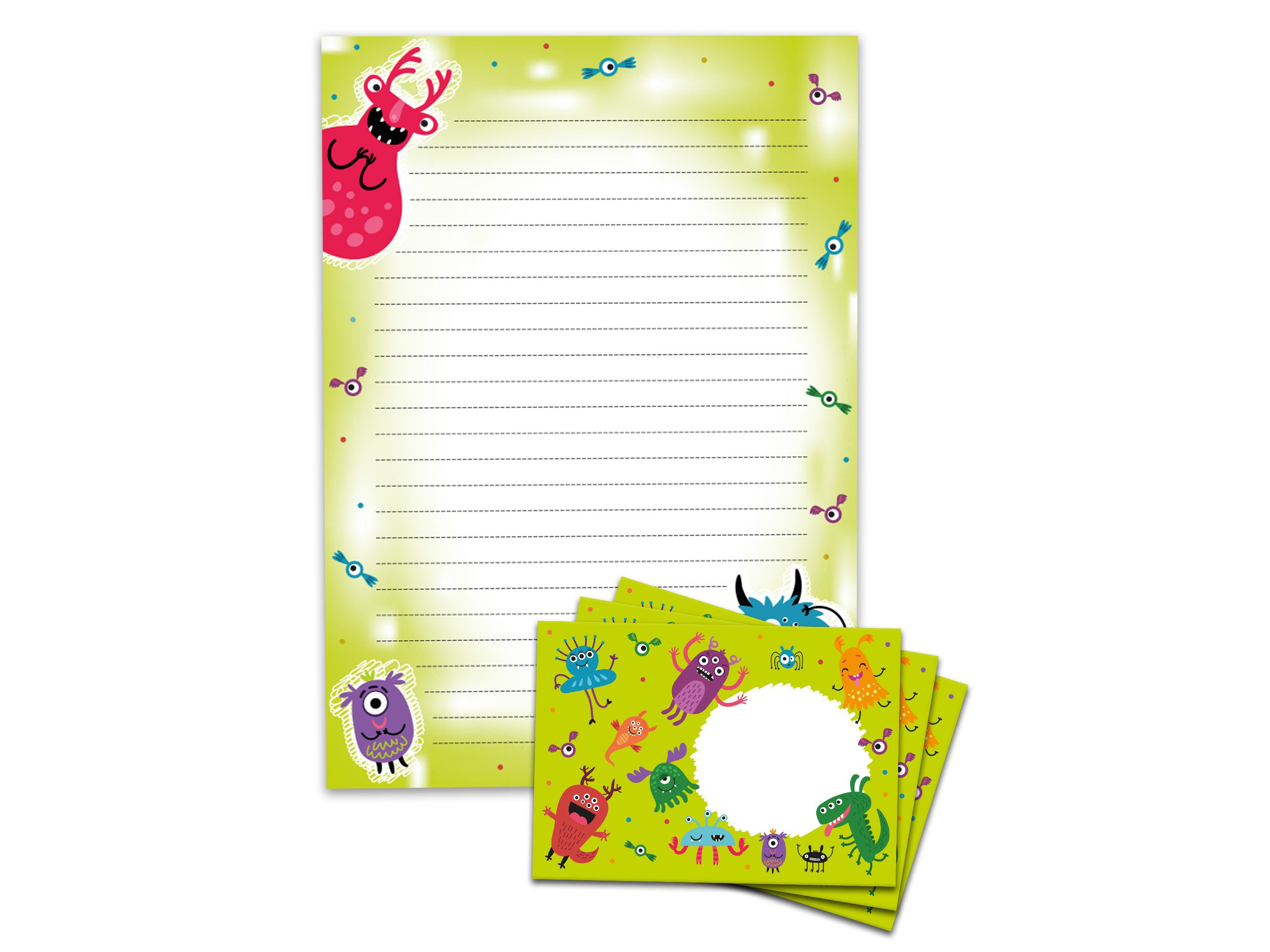 Kinder-Briefpapier-Set – Liniertes A4-Briefpapier mit Umschlägen