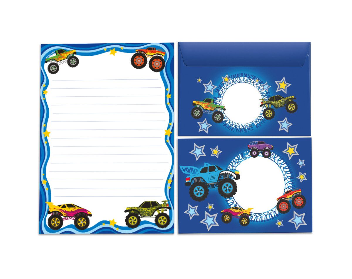 Briefpapier Set Kinder Briefblock A5 mit Umschlägen Notizblock Monster Truck blau