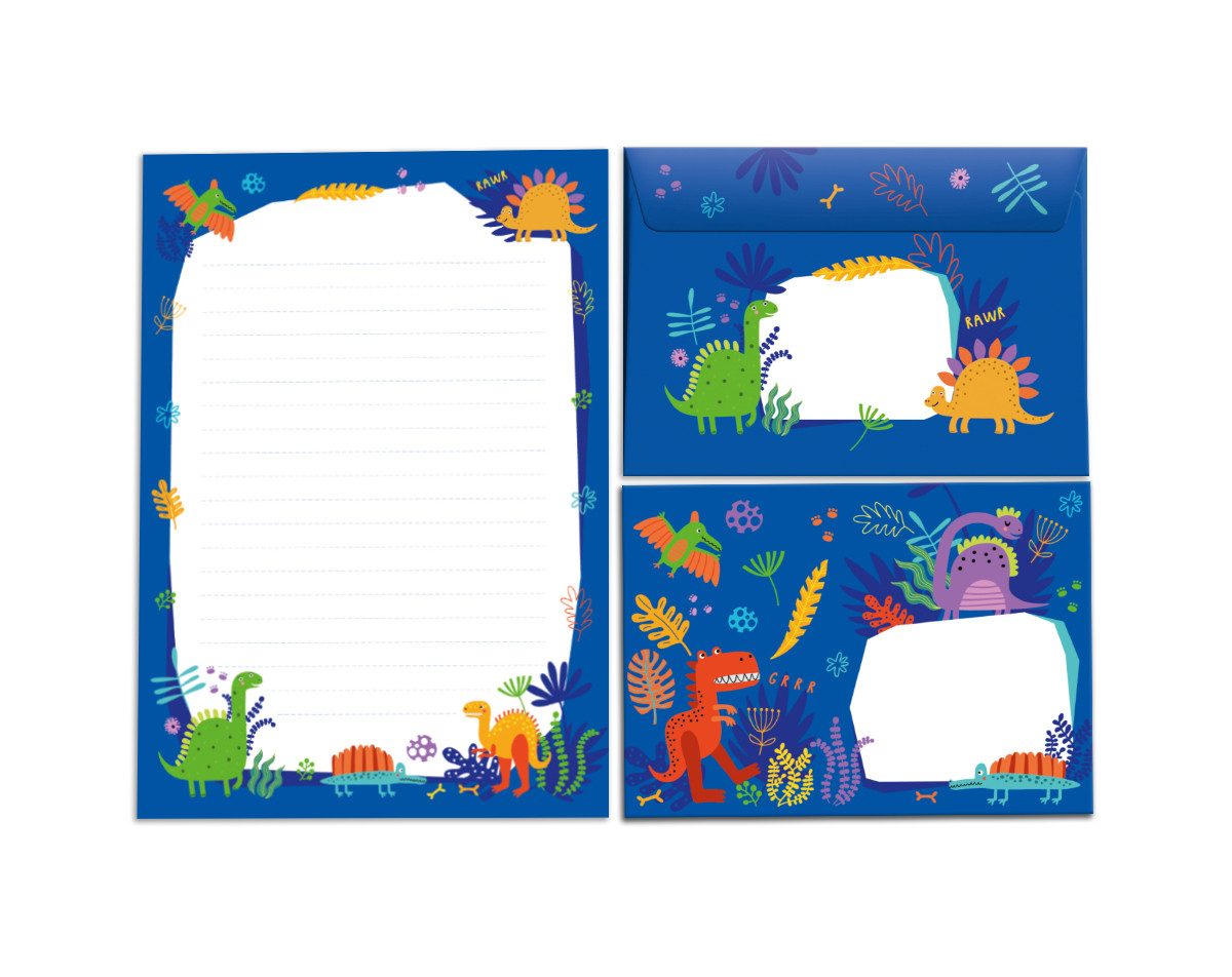 Briefpapier Set Kinder Briefblock A5 mit Umschlägen Notizblock Papier Dinosaurier