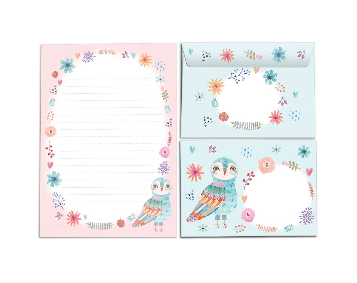 Briefpapier Set Kinder Briefblock A5 mit Umschlägen Notizblock Papier Eule Tiere
