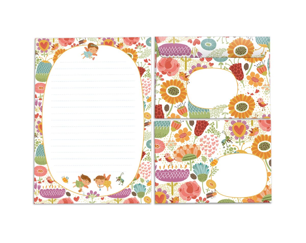Briefpapier Set Kinder Briefblock A5 mit Umschlägen Notizblock Papier Feen Blumen