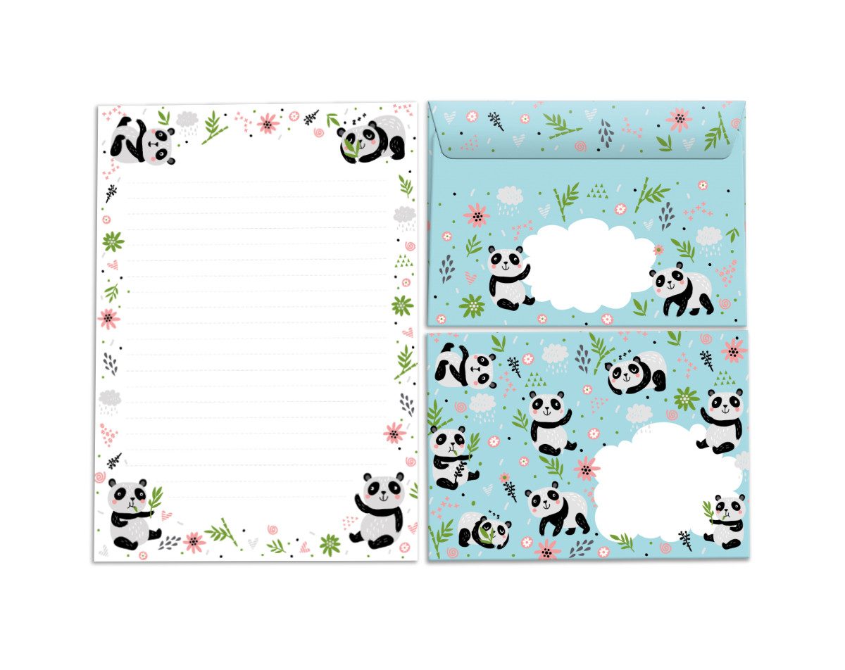 Briefpapier Set Kinder Briefblock A5 mit Umschlägen Notizblock Papier Panda Bär