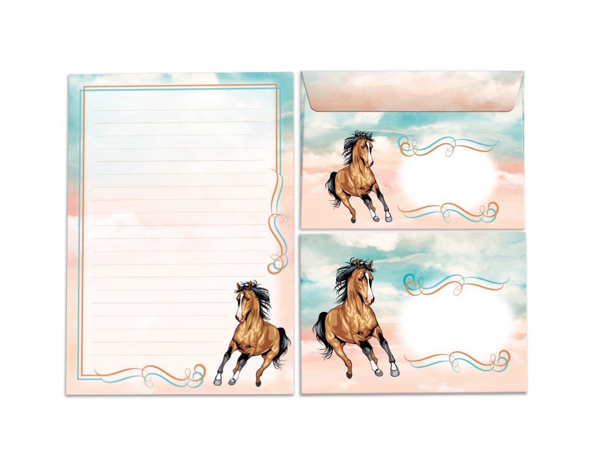 Briefpapier Set Kinder Briefblock A5 mit Umschlägen Notizblock Papier Pferd