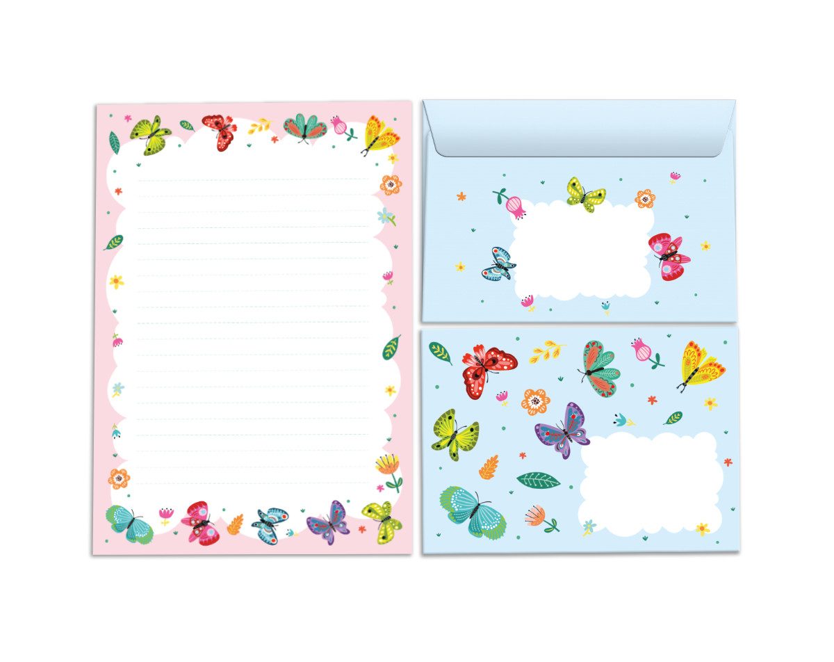 Briefpapier Set Kinder Briefblock A5 mit Umschlägen Notizblock Schmetterling rosa