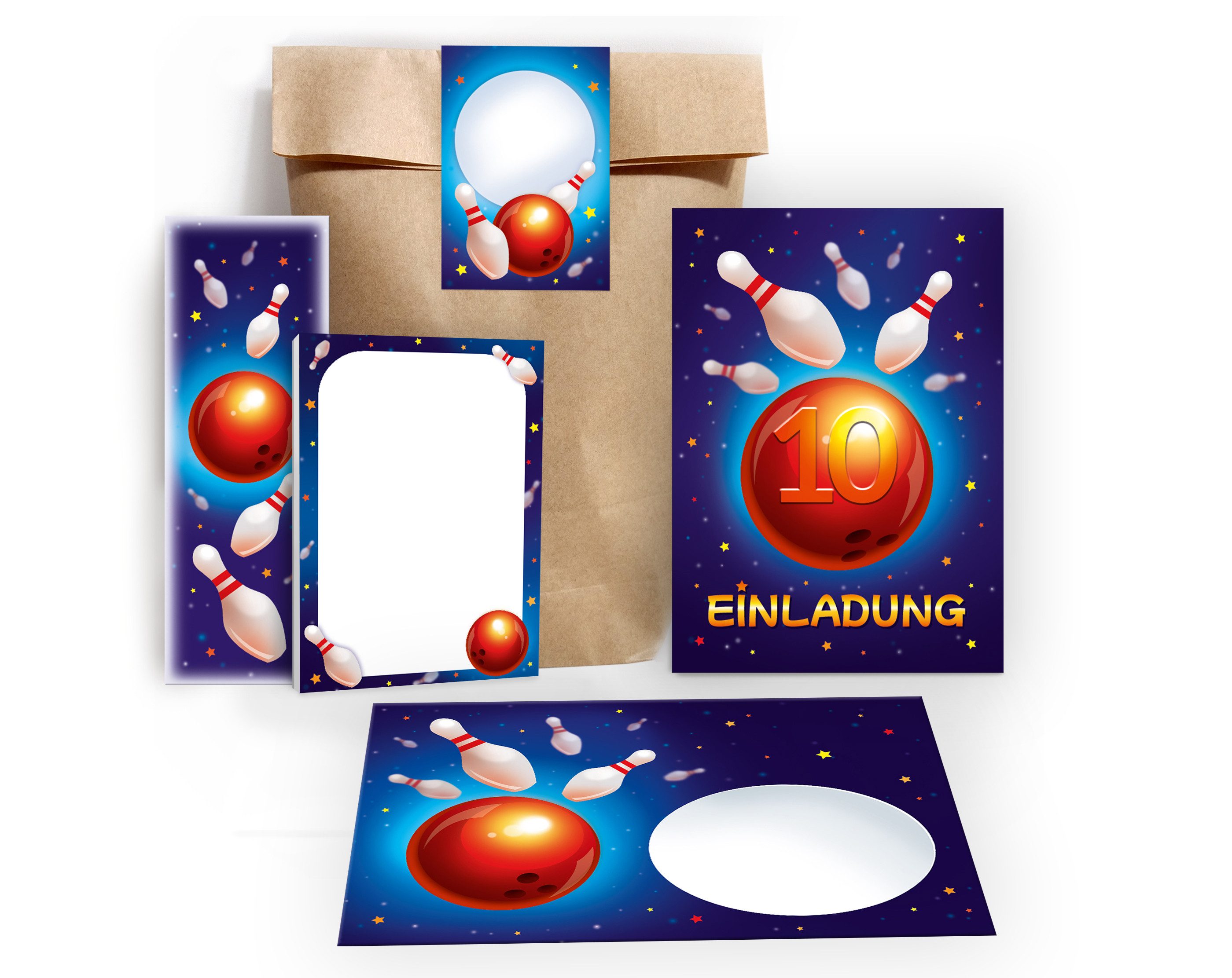 Einladungskarten Bowling zum 10. Geburtstag Einladungen Karten mit Umschlägen Mitgebsel