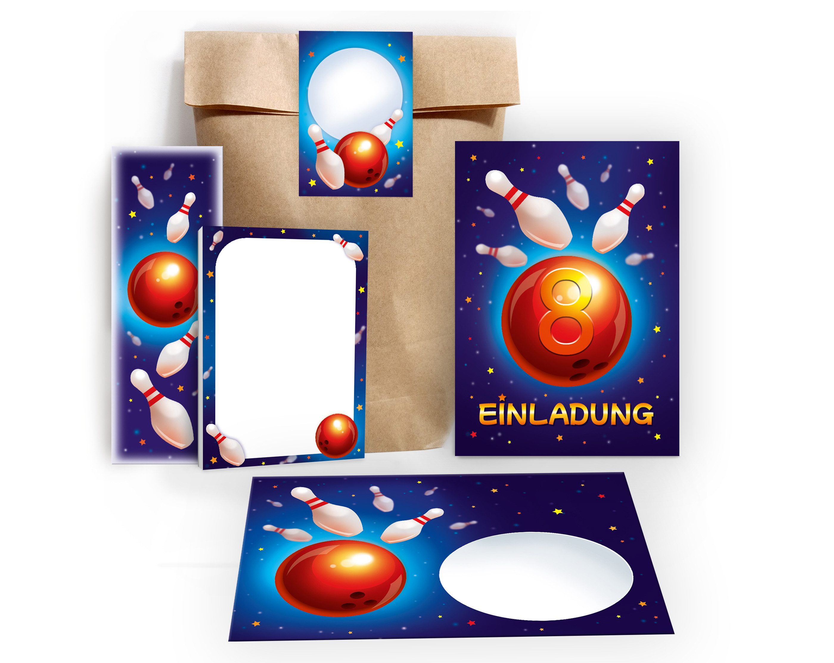 Einladungskarten Bowling zum 8. Geburtstag Einladungen Karten mit Umschlägen Mitgebsel